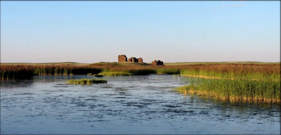 Өглөө цайлчихаад ойр тойрныхоо орчин, нөгөө “Сүм Хөх Бүрд” “Оройгүй сүм”-ээ үзэхээр гарцгаав. Энэ хавьдаа бага шиг гол горхи, нуур цөөрөмтэй, цөөрмийн эрэг хавь өтгөн сахлаг зэгстэй юм. Эртхэндээ нутгийн хөгшид нуурыг хөлгүй нуур, нуурын зэгсэнд орсон бод мал харагддаггүй байсан гэж ярьцгаадаг байсан гэнэ. Хун, галуу, ангирийн сүрэг ирж зусдаг хачин сайхан үзэсгэлэнтэй нуур устай байж. Тэгээд л Хөх Бүрд хэмээн нэршжээ. Ер нь нутаг усны албан ёсны нэр үүгээрээ байдаг гэж нутгийн дарга ярьж байв. “Сүм” гэхийн хувьд арван зургадугаар зууны үед Төвдийн нэгэн ноёны хүү энд ирж нутгийн ардуудаар сүм бариулж яг дуусахын даваан дээр дээврийг нь хийлгэж амжаагүй баривчлагдаад нутаг буцсан түүхтэй юм байна. Тэр цагаас л энэ хавийг нутгийн ардууд “Сүм хөх бүрд” гэх болсон аж. Хожим нь сүмийн дутуу дээврийг хэдэнтээ гүйцээн барьсан боловч байсхийгээд л аянга ниргээд нураачихдаг байж. Ийнхүү энэ сүм өнөө хүртэл дээвэргүй үлдэж “Оройгүй сүм” хэмээн нэрлэгдэх болж. Сүмийн туурь нь нийтдээ дөрвөн хэсгээс бүрддэг юм байна. Хоймрын гол сүмийн нэг адил бусад бага шиг гурав нь бас дээвэргүй, хагас дутуу юм. Тууриудын хана нь нилэнхүүдээ долоо найман метр өндөр, арав орчим метр өргөнтэй аж. Хоймрын сүм бусдаасаа арай том, урт нь хорь гаруй метр гэхээр юм. Хануудыг нэгэн жигдийн хавтгай хөх чулуугаар метрийн өргөнтэй жигдхэн өрж барьцалдуулжээ. “Сүм хөх бүрд” нэрийн “Хөх” гэдэг нь энэ хөх чулуунаас нь үүдэлтэй юм байх. Энэ сүмийн тууринд өнгөрсөн зууны эхээр Ноён хутагт Д. Данзанравжаа “Саран хөхөө” жүжгээ тоглуулж байсан түүхтэй юм байна. Нуурын усыг гурван горхи сэлбэж байсан бөгөөд сүүлийн жилүүдэд ганц нь л үлдэж нуурын усны түвшин ихэд доошилсон гэнэ. Нуурын урдах “Үүдэн булгийн рашаан” нь харин ундарга сайтай юм билээ. Туурийн урдуур 40 метр урт давхар чулуун хэрэм, бас нэгэн том байшин байсныг нутгийн ардууд буулгаад малын хашаа барьчихсан гэх яриа байдаг юм байна. Сүмийн туурь болж үлдсэн энэ чулуун цайз, орчин тойрных нь горхи, нуур цөөрмийг 1998 оноос улсын тусгай хамгаалалтад авсан гэнэ. Бид хэд сүмийн туурь, орчин тойронтой нь танилцаж зураг хөрөг авч явцгаав...