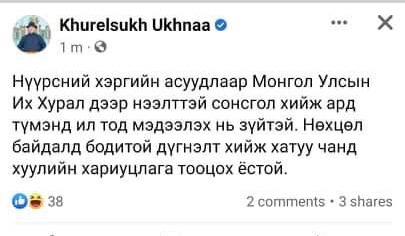 Нүүрсний бүлэглэлийг илчилж, хариуцлага тооцох асуудлаар иргэд хоёр өдөр Төв талбайд эсэргүүцлийн жагсаал зохион байгуулсан. Үүнтэй холбоотой Ерөнхийлөгч У.Хүрэлсүх өөрийн цахим хаягаараа дамжуулж "Нүүрсний хэргийн асуудлаар Монгол Улсын Их Хурал дээр нээлттэй сонсгол хийж ард түмэнд ил тод мэдээлэх нь зүйтэй. Нөхцөл байдалд бодитой дүгнэлт хийж хатуу чанд хуулийн хариуцлага тооцох ёстой" гэх байр суурийг илэрхийлжээ.