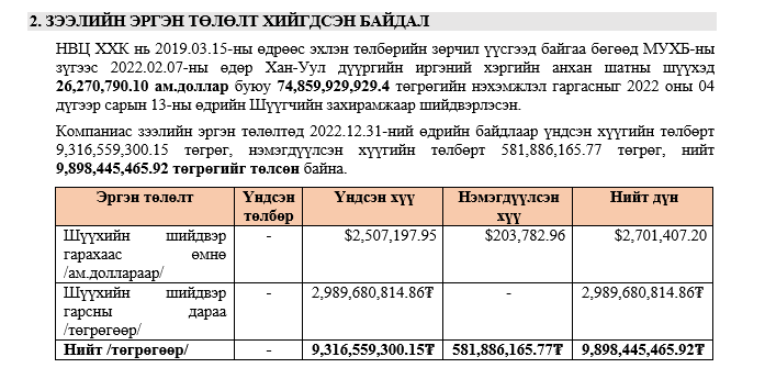 Тодруулбал, МУХБ-ны ТУЗ-ийн 2017 оны наймдугаар сарын 23-ны өдрийн 60 дугаар тогтоол, ЗУХ-ны 2017 оны наймдугаар сарын 17-ны өдрийн 2017/67 дугаартай дүгнэлтийн хүрээнд НВЦ ХХК-ийн “Хөдөө аж ахуй, шувууны гаралтай бүтээгдэхүүн үйлдвэрлэлийн цогцолбор байгуулах төсөл”-д зориулан 21.0 сая ам.доллар хүртэл зээлийг олгохоор шийдвэрлэсэн. Тэгвэл зээлийг эргэн төлөхөд тулгамдаж байгаа асуудал нь үйл ажиллагааны орлогоос шүүхийн шийдвэрээр гарсан өр төлбөрийг богино хугацаанд төлж барагдуулах боломжгүй байгаа. Өнөөдрийн байдлаар сард 400 орчим сая төгрөгийн төлбөрийг үйл ажиллагааны орлогоос төлж байгаа аж.