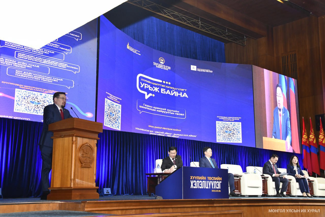 Улс орны нийгэм, эдийн засгийн суурь харилцааг зохицуулах Газрын багц хууль, Геодези зураг зүйн тухай хууль, Хот байгуулалтын тухай хуулийн шинэчилсэн найруулгын төслийн талаар төрийн болон төрийн бус байгууллага, иргэд олон нийт, эрдэмтэн судлаачид та бүхэн ажил хэрэгч, шийдэл эрэлхийлсэн, гарц шийдэлтэй санал бодлоо хэлэлцүүлж, өнөөдрийн хэлэлцүүлэгт үнэтэй хувь нэмэр оруулна гэдэгт итгэж байна" гэлээ.