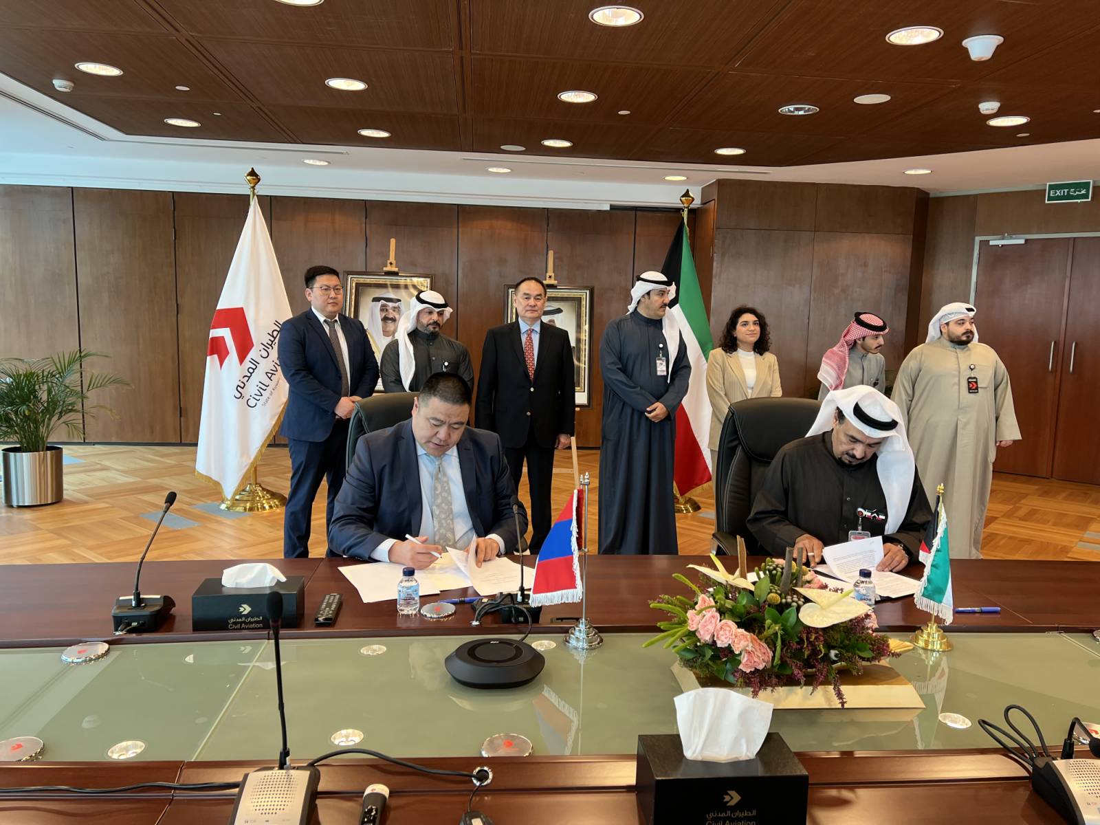 Зам, тээврийн хөгжлийн яам, Иргэний нисэхийн ерөнхий газрын төлөөлөгчид 2023 оны хоёрдугаар сарын 14-ний өдөр Кувейт Улсын Иргэний нисэхийн ерөнхий газрын дэд дарга Эмад Ал-Желви тэргүүтэй төлөөлөгчидтэй уулзаж хоёр улсын агаарын тээврийн салбарын хамтын ажиллагаа, агаарын харилцааны асуудлаар санал солилцож, Агаарын харилцааны тухай Монгол Улсын Засгийн газар, Кувейт Улсын Засгийн газар хооронд байгуулах хэлэлцээрийн төслийг үзэглэж, Хэлэлцээрийг ойрын хугацаанд эцэслэн байгуулахаар тохиролцлоо.