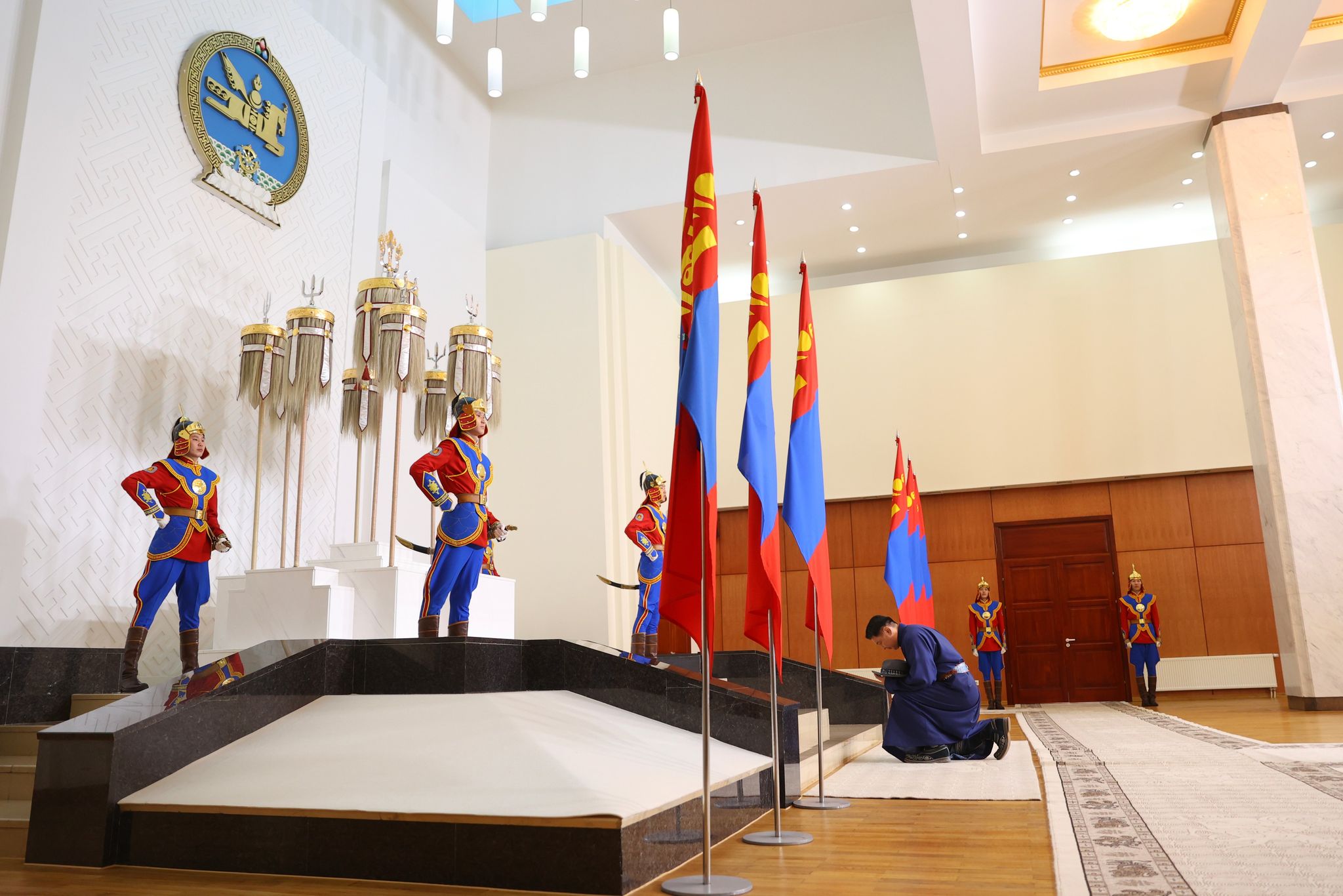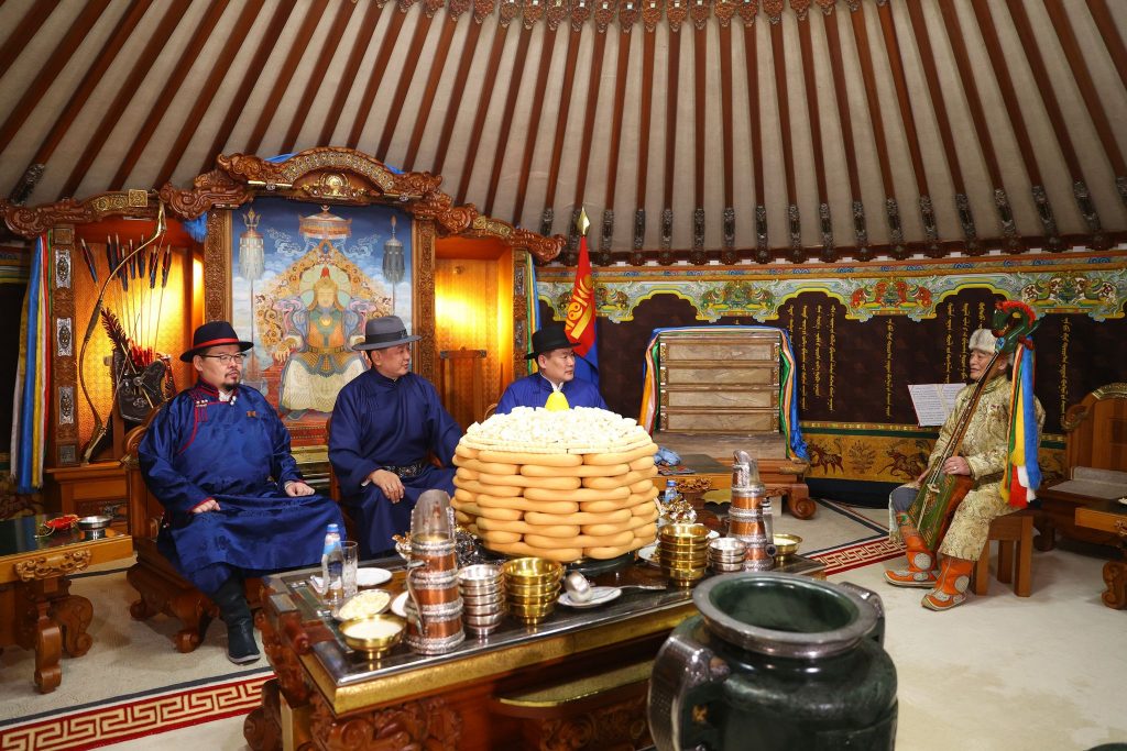 | Төрийн гурван өндөрлөг Есөн хөлт цагаан туганд хүндэтгэл үзүүлж, Төрийн золголт хийлээ |