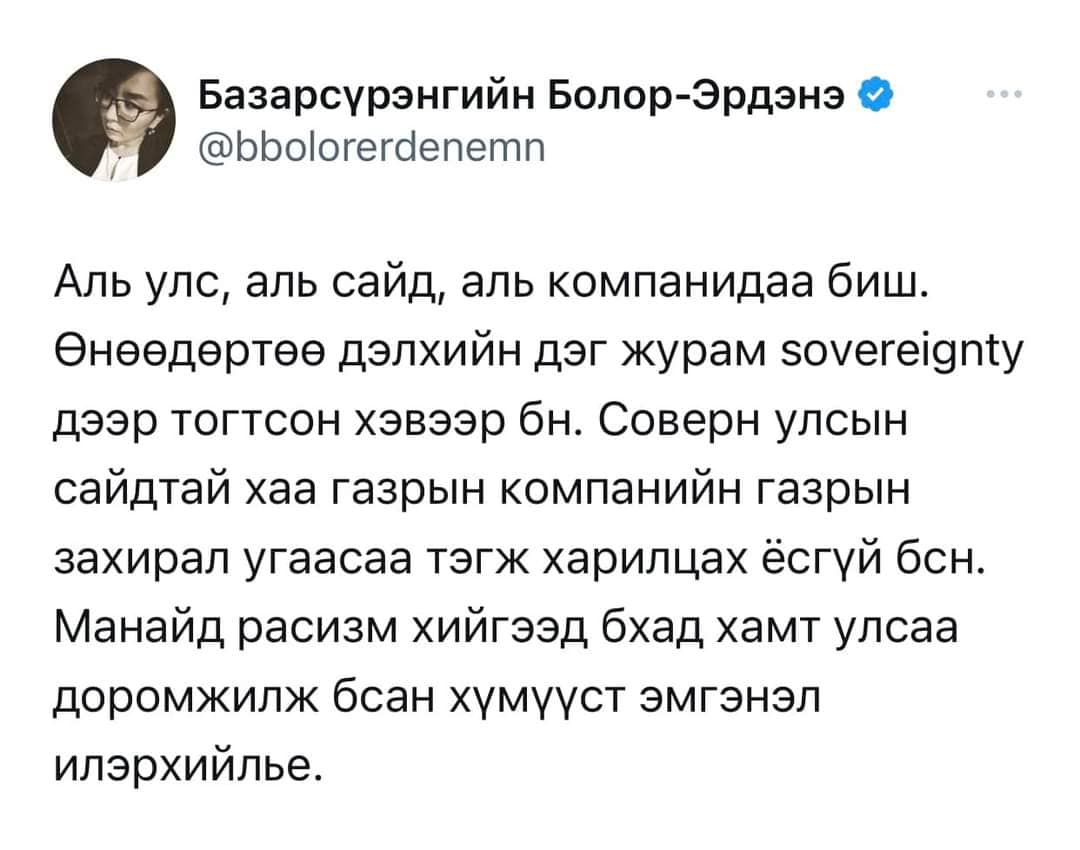 Тэгвэл өнгөрсөн амралтын өдрүүдэд Мета компанийн төв Ази, Хятад, Монгол Улсын олон нийтийн бодлого хариуцсан захирал Жорж Ченийг ажлаасаа халагдсан тухай мэдээлэл цахим сүлжээнд цацагдаад байна. Тодруулбал, олон нийтийн сүлжээнд “Х.Нямбаатар сайд ажлаас нь халуулж чаджээ. Х.Нямбаатар сайдын талаар ташаа мэдээлэл тараасан захирал долоон жил ажилласан ажлаа өгчээ. Сайд компани руу нь баримт, бичиг явуулсанаар асуудал шийдэгдлээ” зэргээр бичиж байгаа юм.