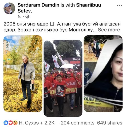 С.Шаарийбуу гуайн охин Ш.Алтантуяа Малайз Улсад амиа алдаад 19 жил болж, С.Шаарийбуу 19 дэх жилээ Малайз Улсын шүүх хуралд оролцоод ирсэн. Саяхан түүнд уй гашуудлаа илэрхийлсэн нэгэн иргэн өөрийн цахим хуудастаа "Малайз Улсаас С.Шаарийбуу гуайд олгосон хохирлын мөнгийг нь Ерөнхий сайд асан Сү.Батболд, Гадаад харилцааны сайд асан Лу.Болд, Консулын газрын дарга асан Я.Ариунболд нар авлига хэлбэрээр авсан. Харин С.Шаарийбуу гуайд нэг ч төгрөг ирээгүй" хэмээн нийтэлсэн нь олны анхаарлыг татаад байгаа юм. Гэтэл дээрх нэр бүхий хүмүүсийн зарим нь С.Шаарийбуу гуайд чадахынхаа хэрээр тусалж, дэмжиж байсан. Ийм худал мэдээлэл гаргаж, гүтгэж, доромжилсон Д.Сэрдарам гэх хүн нотлох баримтуудаа аваад шүү дээр очоорой. Би өөрийнхөө нэр төрийг сэргээнэ" хэмээсэн юм. Ш.Алтантуяагийн хэргийг замхруулахын тулд Малайзын Засгийн газраас авлига авсан эсэхээ мөн хүний амийг хөнөөсөн этгээдийг цаазын ялаар шийтгэж болохгүй гэж яриагүй нь үнэн бол Элчин сайдын суудлаасаа бууж байгаад шалгуулах хэрэгтэй. Хэрвээ тэгж чадахгүй бол хэн нэгнийг цахимаар албан тушаал, эрх мэдлээрээ айлган сүрдүүлээд өнгөрч байгаатай ялгаагүй зүйл болно. Үнэхээр үнэний төлөө явж, С.Шаарийбууд чадахаараа тусалж байсан бол түүнийгээ мөн ил тод болгож, үнэний төлөө явдаг, ажилладаг хүнд албан тушаал тийм ч чухал биш гэдгийг харуулж, энэ нийгэмд бодит жишиг тогтоомоор байна.