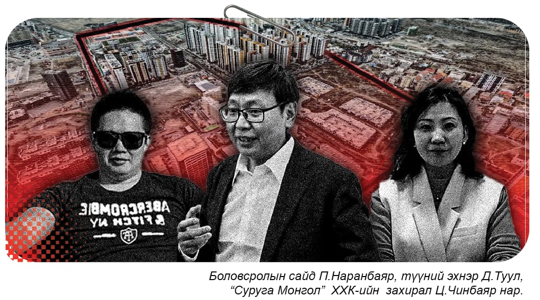 Т.Гочоосүрэн тэргүүтэй хүмүүсийн “дэглэсэн” хар тамхины хэргийн дуулиан намжсаны дараа, 2016 онд “Суруга монгол” ХХК-ийн эцсийн өмчлөгч, захирлаар нь Цэрэнбатын Чинбаяр гэх залуу бүртгэгдсэн байдаг. Улмаар 2016-2018 онд Хотын дарга Су.Батболдын угсраа захирамжаар “Суруга Монгол” ХХК-ийн өнөөх 88 га газар гурав хуваагдаж, нэг хэсэг нь Ц.Чинбаярт, нөгөө хэсэг нь Б.Наранхүүгийн хувийн хуульч Б.Билэгсайханд, үлдсэн нь ҮАБЗ-ийн дарга асан, “Буурал” хочит А.Гансүхийн төрсөн дүү А.Ганболдод очсон. Эндээсээ цаашаа “Хурд”-ын Б.Чойжилсүрэнд, “Таванбогд”-ын Ц.Баатарсайханд, “Номин”-гийн Ш.Баярсайханд гэх мэтээр задаргаанд орж зарагдсан түүхтэй.