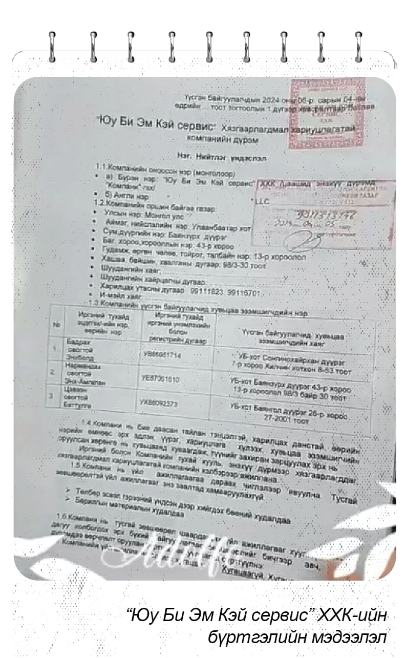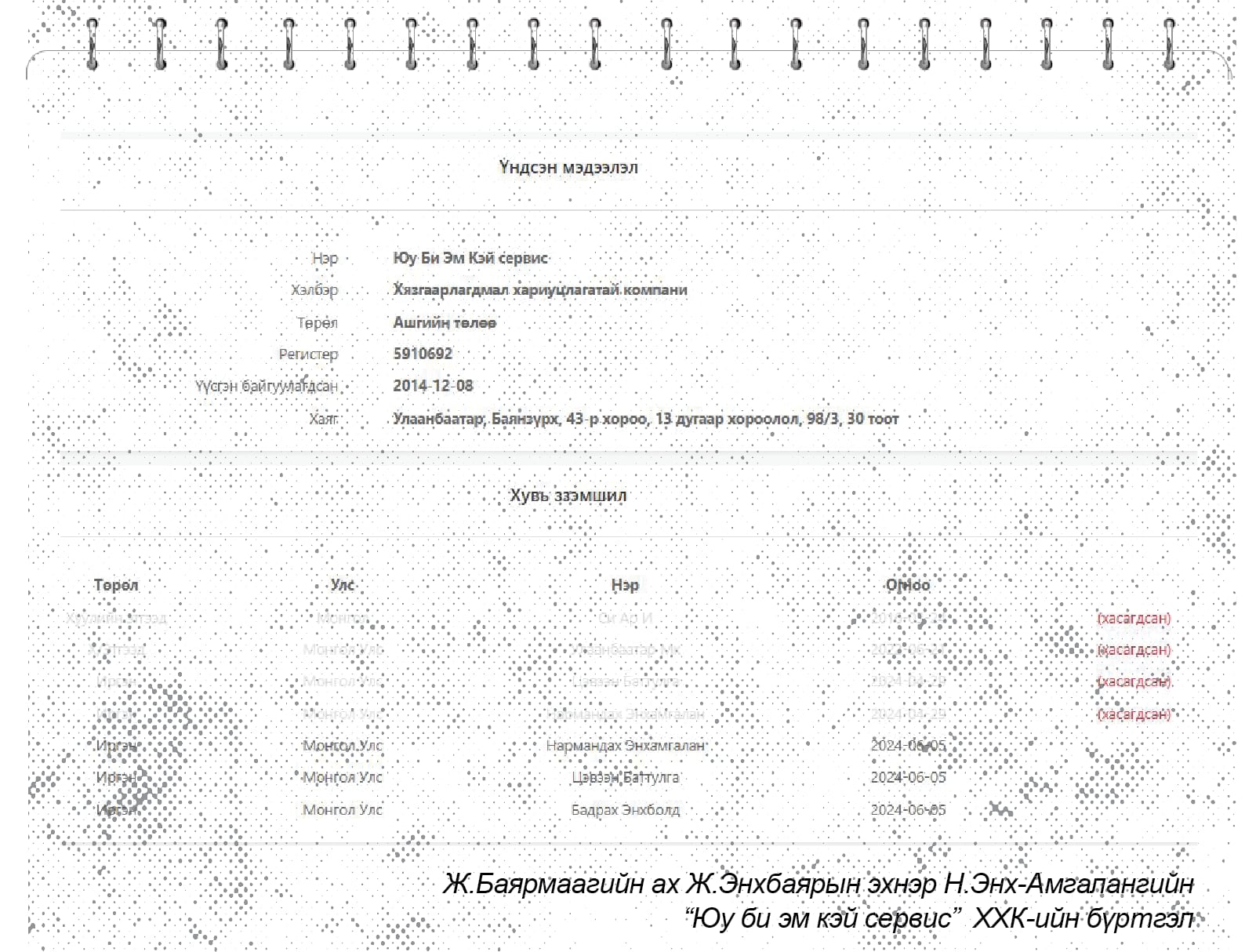 УИХ-ЫН ГИШҮҮН Б.МӨНХСОЁЛЫН НӨХӨР О.БАТТӨРИЙН КОМПАНИ “ЭРДЭНЭТ ҮЙЛДВЭР”-ИЙН ТЕНДЕРҮҮД РҮҮ “ЗҮТГЭХ”-ИЙН УЧИР ЮУ ВЭ