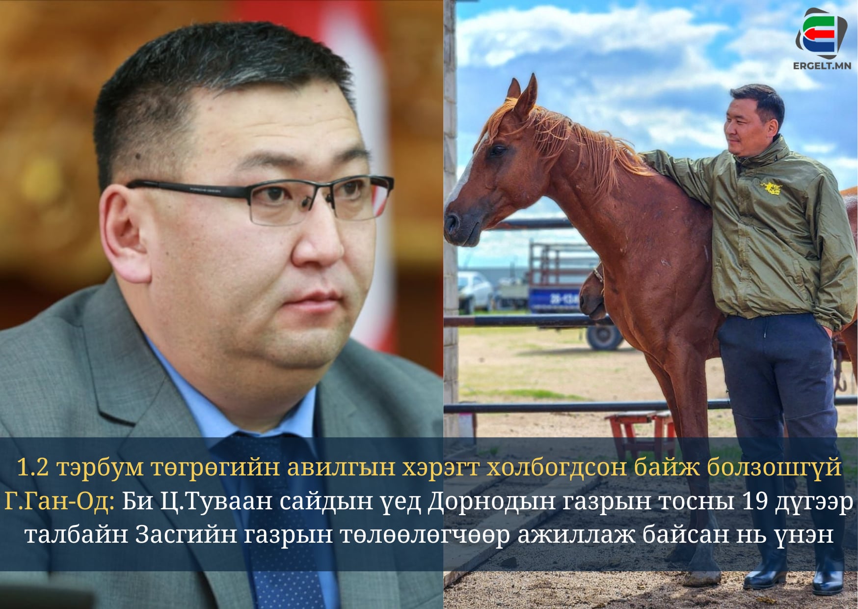 1.2 ТЭРБУМ ТӨГРӨГИЙН АВИЛГЫН ХЭРЭГТ ХОЛБОГДСОН ГЭХ Г.ГАН-ОД: БИ Ц.ТУВААН САЙДЫН ҮЕД ДОРНОДЫН ГАЗРЫН ТОСНЫ 19 ДҮГЭЭР ТАЛБАЙН ЗАСГИЙН ГАЗРЫН ТӨЛӨӨЛӨГЧӨӨР АЖИЛЛАЖ БАЙСАН НЬ ҮНЭН
