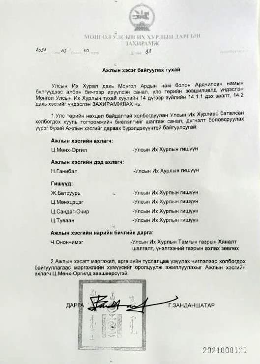 | МАН, АН-ын бүлгийн гишүүдийн хамтарсан Ажлын хэсэг байгуулж, ажилдаа орлоо |
