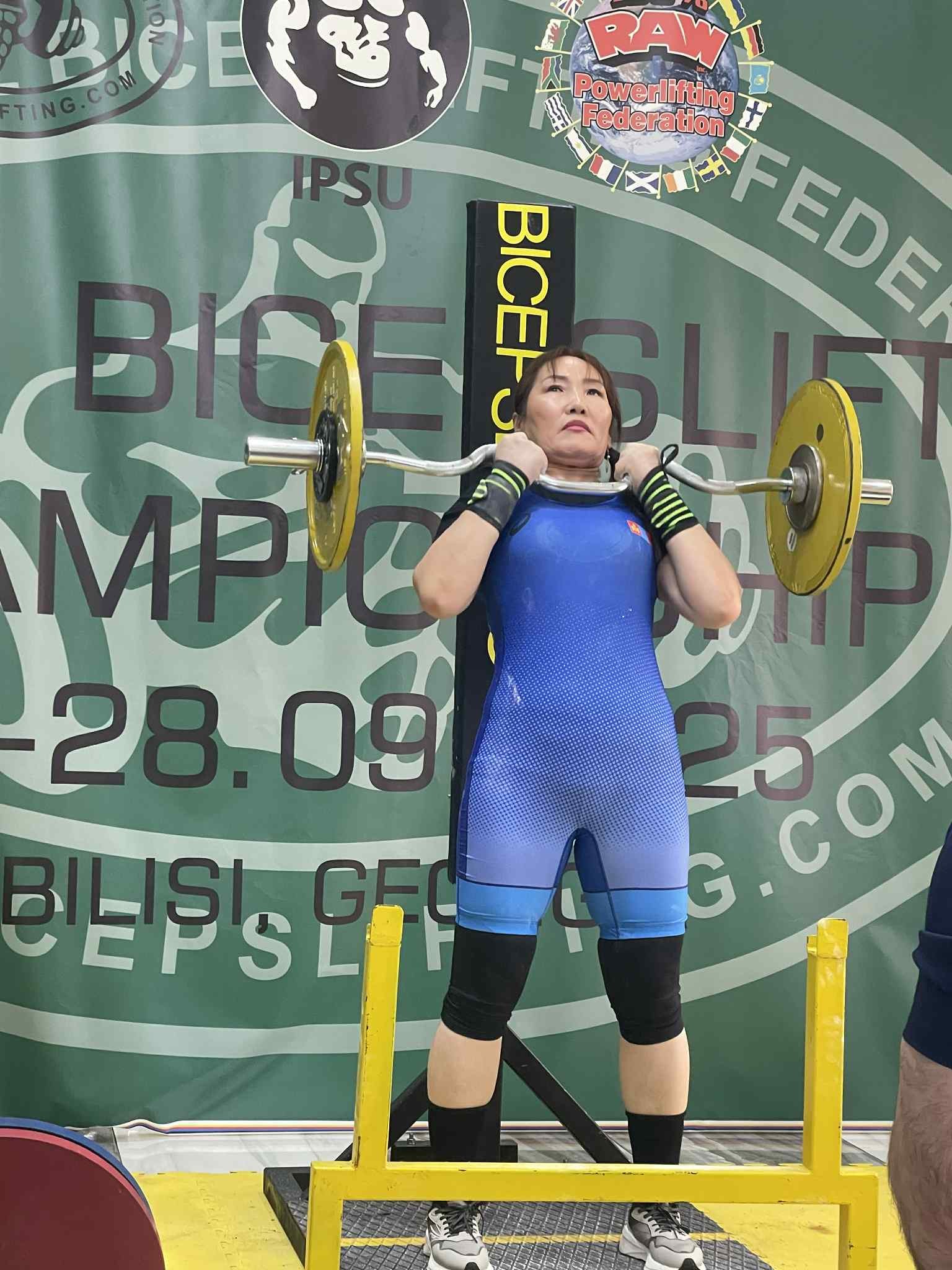 -Би -67.5 кг-ын жингийн ангилалд өрсөлдсөн. Тэмцээн дээр 41 кг-ыг өргөж дэлхийн аварга болсон.