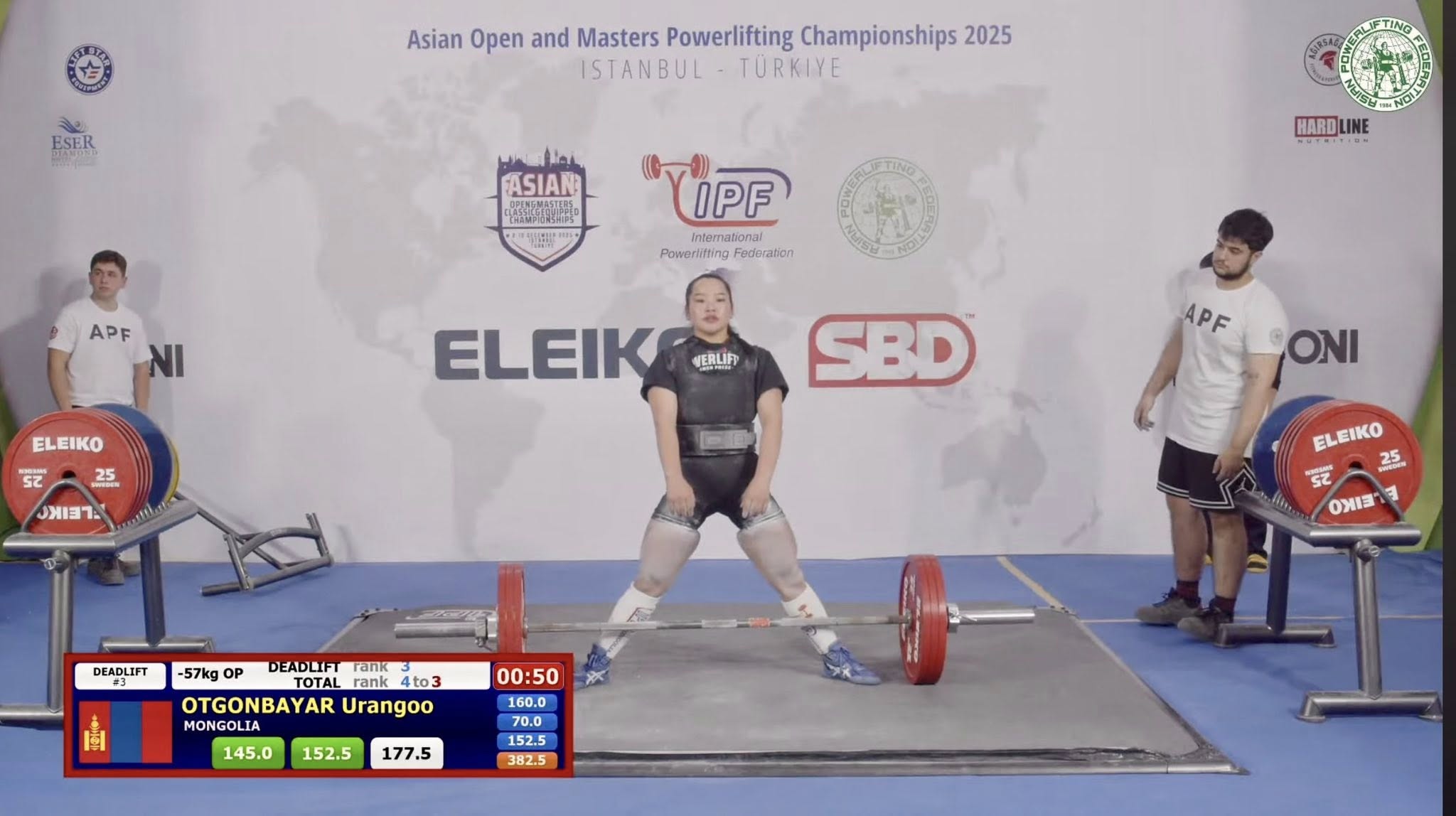 -2025 оны арванхоёрдугаар сарын 8–12-ны өдрүүдэд Турк Улсад зохион байгуулагдсан насанд хүрэгчид болон мастер ангиллын “classic”, “equipped” пауэрлифтингийн Азийн аварга шалгаруулах тэмцээнд оролцсон. Миний хувьд эмэгтэй насанд хүрэгчдийн ангиллын -57 кг жинд “equipped” төрлөөр өрсөлдсөн.