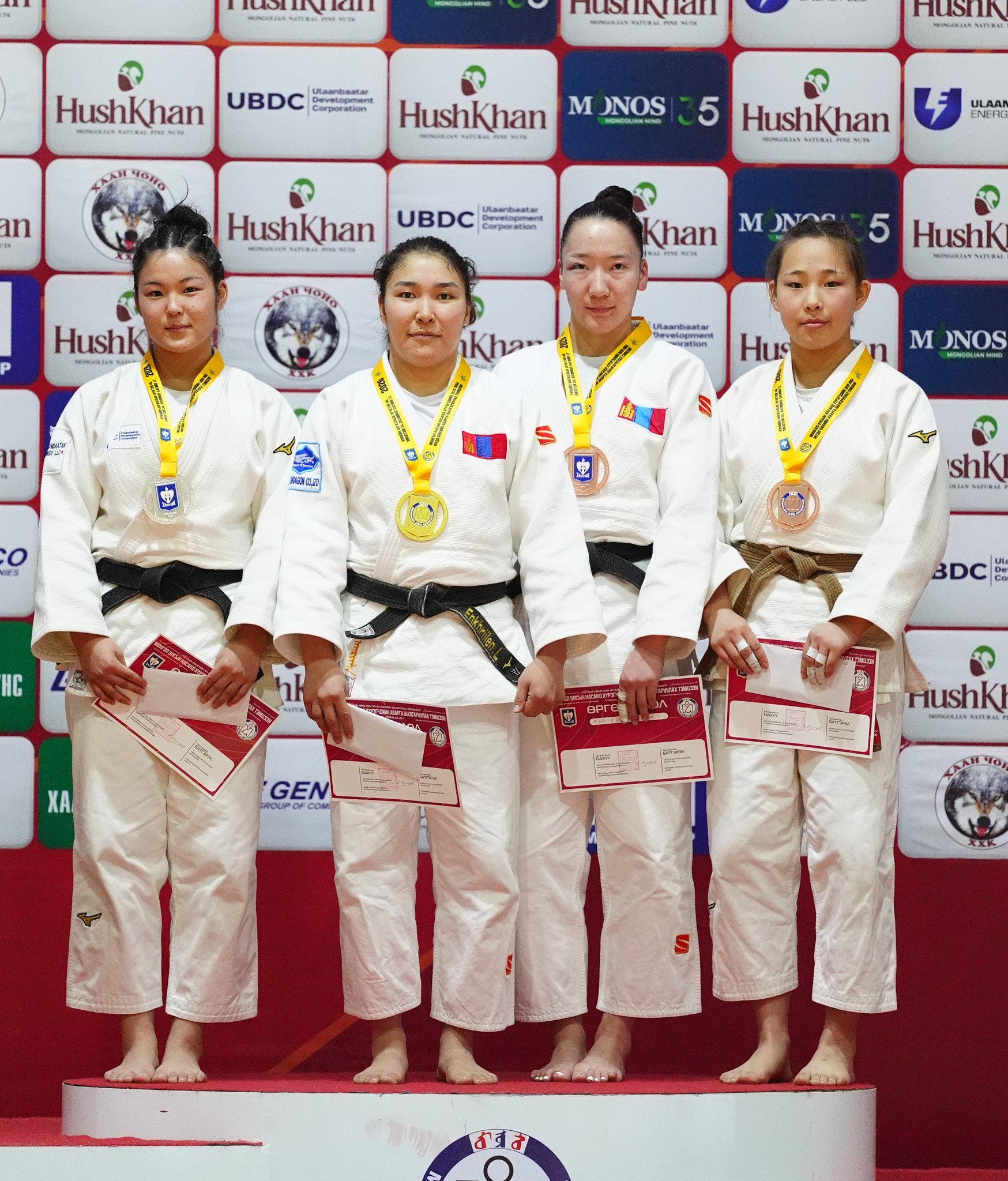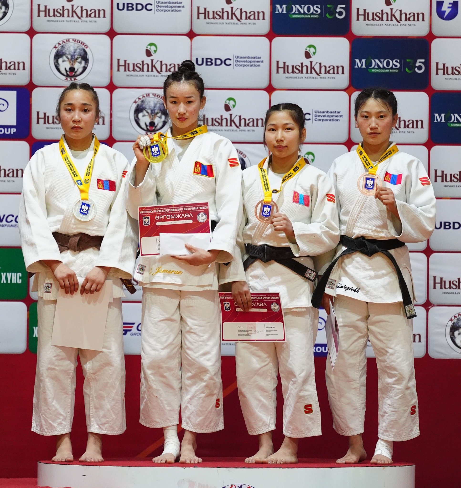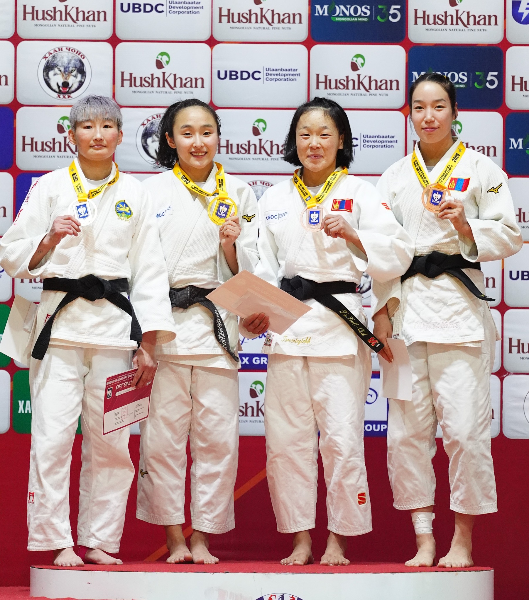 Жүдо бөхийн насанд хүрэгчдийн УАШТ-ий эмэгтэйчүүдийн 52 кг-ын жинд “Гүрү дожо” дэвжээний бөх, ОУХМ М.Нандин-Эрдэнэ хоёр дахь жилээ дараалан аваргалав. Азийн аваргын хүрэл медальт, “Их дуулга” ангиллын хошой аварга, ОУХМ Г.Наранцэцэг энэ удаад жин өгсөж барилдаад мөнгөн медаль дээр буулаа.