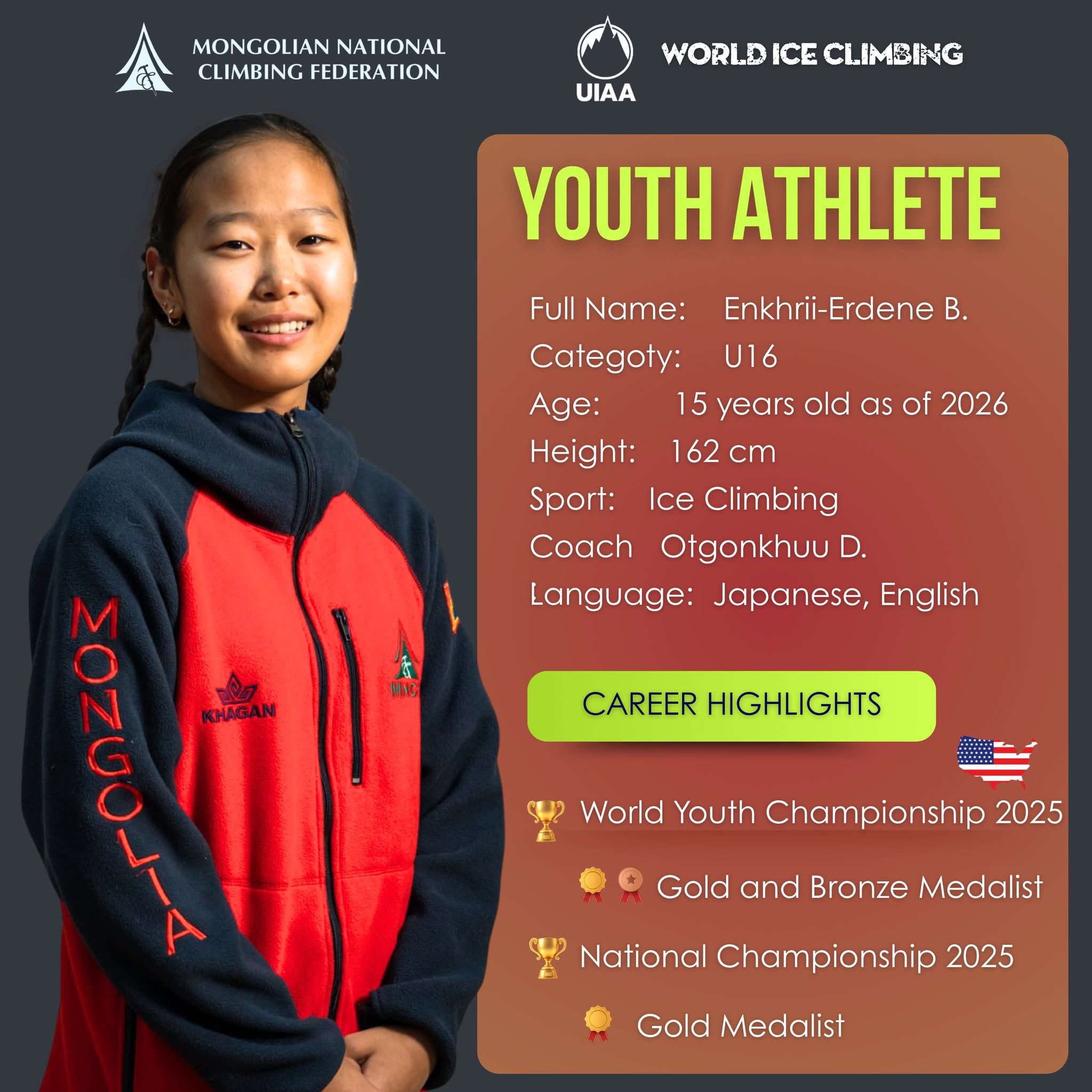 Лихтенштейн Улсын Мальбун хотод мөсөнд авиралтын залуучуудын 2026 оны ДАШТ нэгдүгээр сарын 29-31-ний зохион байгуулагдаж байна. “UIAA”-гийн мөсөнд авиралтын залуучуудын ДАШТ-ний “U20” ангиллын хурдны төрөлд өрсөлдсөн Ж.Амина медаль хүртлээ.