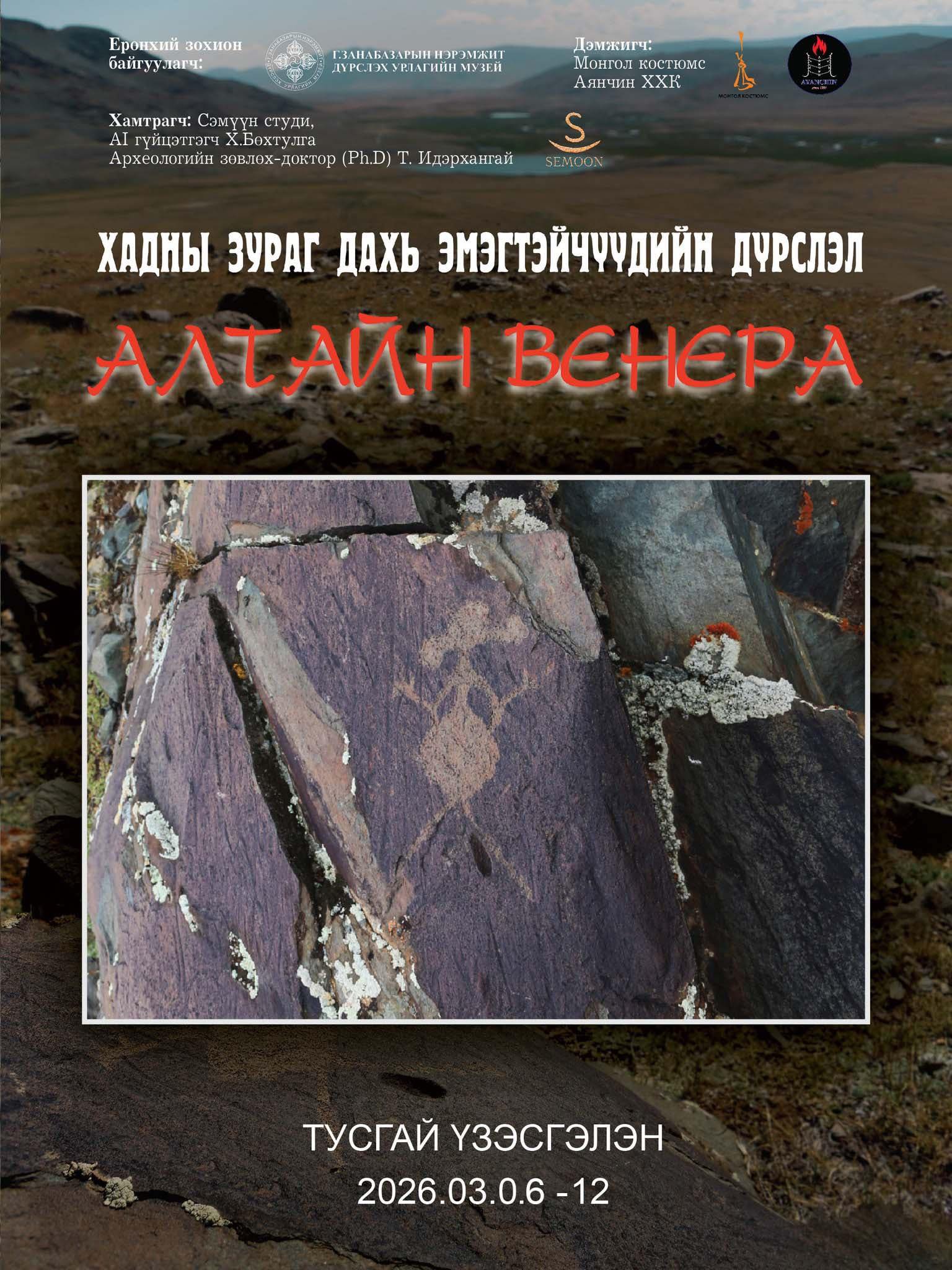 2001 оноос эхлэн “Бүсгүйчүүдийн дүр дүрслэх урлагт” үзэсгэлэнг уламжлал болгон зохион байгуулсаар ирсэн билээ. Энэ удаагийн үзэсгэлэнг найруулагч, “Сэмүүн” студийн захирал Б.Баяр, уран бүтээлч Х.Бөхтулга, археологич Т.Идэрхангай нартай хамтран хадны зураг дахь эмэгтэйчүүдийн дүрслэл “АЛТАЙН ВЕНЕРА” үзэсгэлэнг 2026 оны гуравдугаар сарын 6-12-ны өдрүүдэд зохион байгуулж үзэгчдэдээ толилуулах гэж байна.