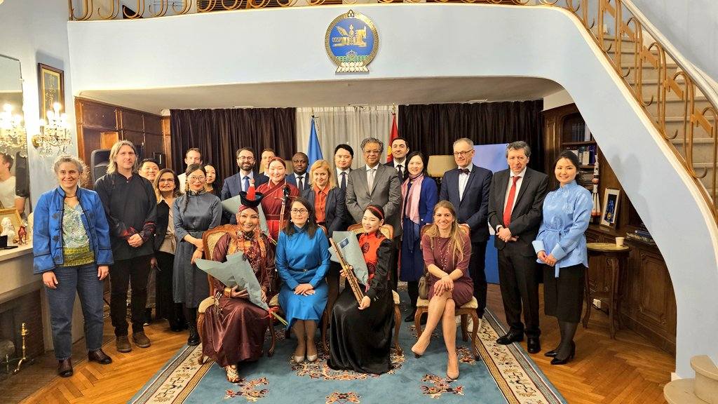 Монгол Улсаас Франц Улс суугаа Элчин сайдын яам, “ЮНЕСКО”-гийн дэргэдэх Байнгын төлөөлөгчийн газар, “ЮНЕСКО”-гийн итгэмжит “Routes Nomades” “Нүүдэлчин зам” холбоотой хамтран Монголын язгуур соёлын биет бус өвийг сурталчлах тоглолтыг 2026 оны гуравдугаар сарын 3-ны өдөр ЭСЯ-нд зохион байгуулжээ.