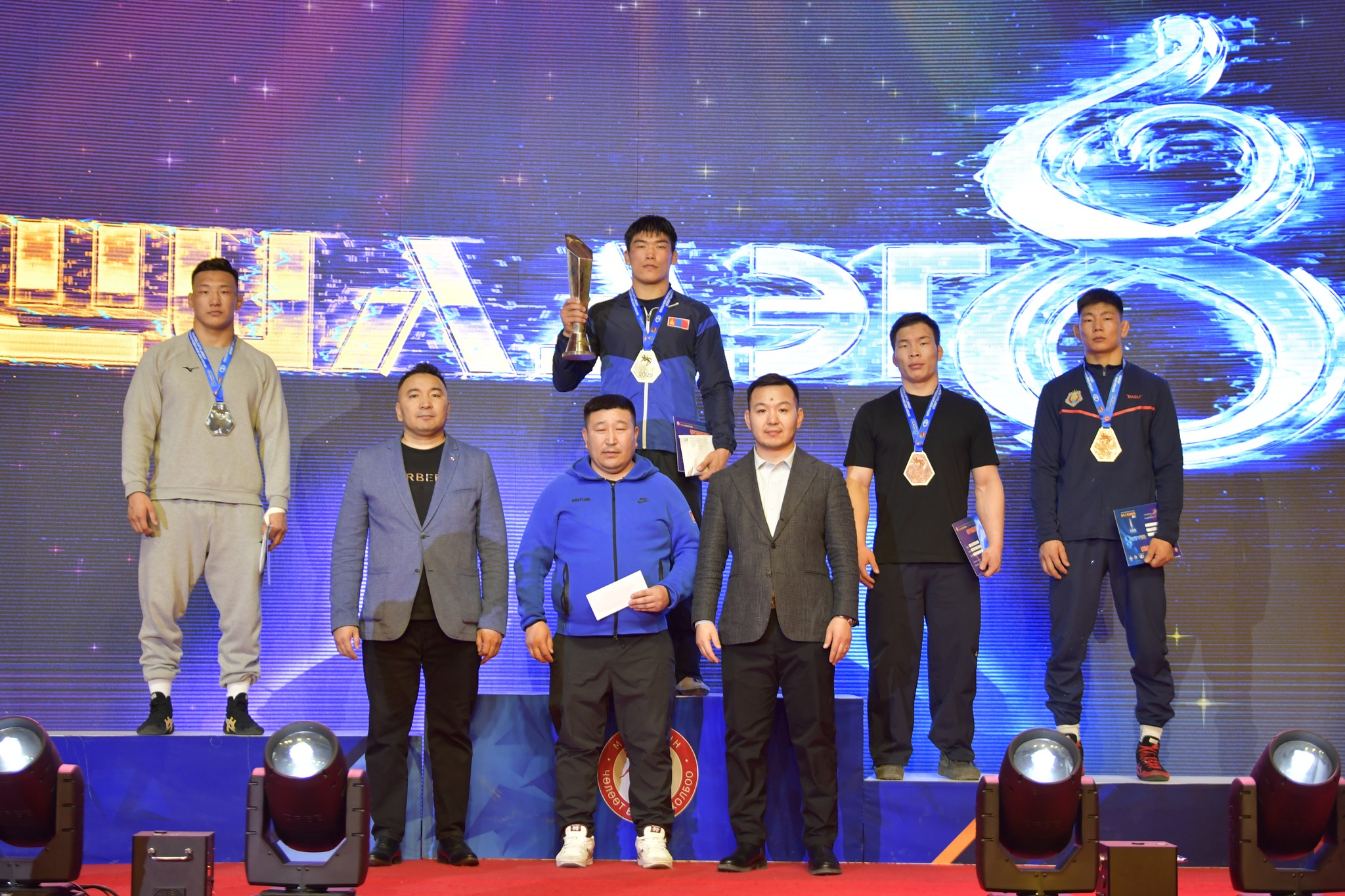 Азийн аваргын мөнгөн медальт Э.Бямбадорж, улсын аваргын алт, хошой мөнгөн медальт Б.Батбаяр нар хүрэл медалийн эзнээр тодорсон. Б.Батбаярын хувьд, 2024, 2025 оны улсын аваргаар 74 кг-ын жинд финалдаад өнөө жил 79 кг-д хүч сорьж ахин аваргын төлөө барилдахаар шалгарсан билээ. Тэгвэл энэ удаа 86 кг руу өгсөж барилдаад мөн л медалийн тавцанд гарч байна. Харин Э.Бямбадоржийн тухайд, сүүлийн хоёр жилийн улсын аваргаар 86 кг-ын жинд өрсөлдөөд мөнгө, хүрэл медалийг гардаад байгаа юм.