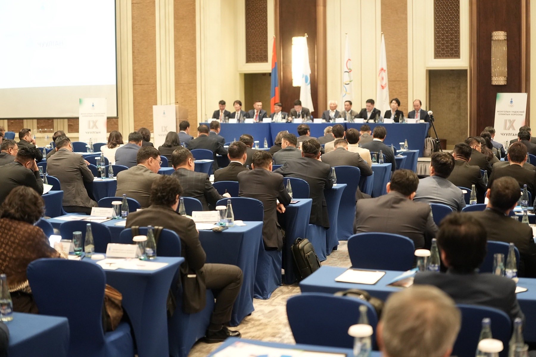 Монголын үндэсний олимпын хорооны IX чуулган эхэллээ. Чуулганд оролцвол зохих 171 гишүүнээс 136 нь хүрэлцэн ирсэнээр чуулган эхэлсэн бөгөөд Олон улсын олимпын хорооны гишүүн, МҮОХ-ны ерөнхийлөгч Б.Баттүшиг чуулганыг нээж үг хэлэв. Мөн Олон улсын олимпын хорооны ерөнхийлөгч Кирсти Конвентри чуулганд оролцогчдод амжилт хүслээ. Одоо МҮОХ-ны тайланг танилцуулж байна.