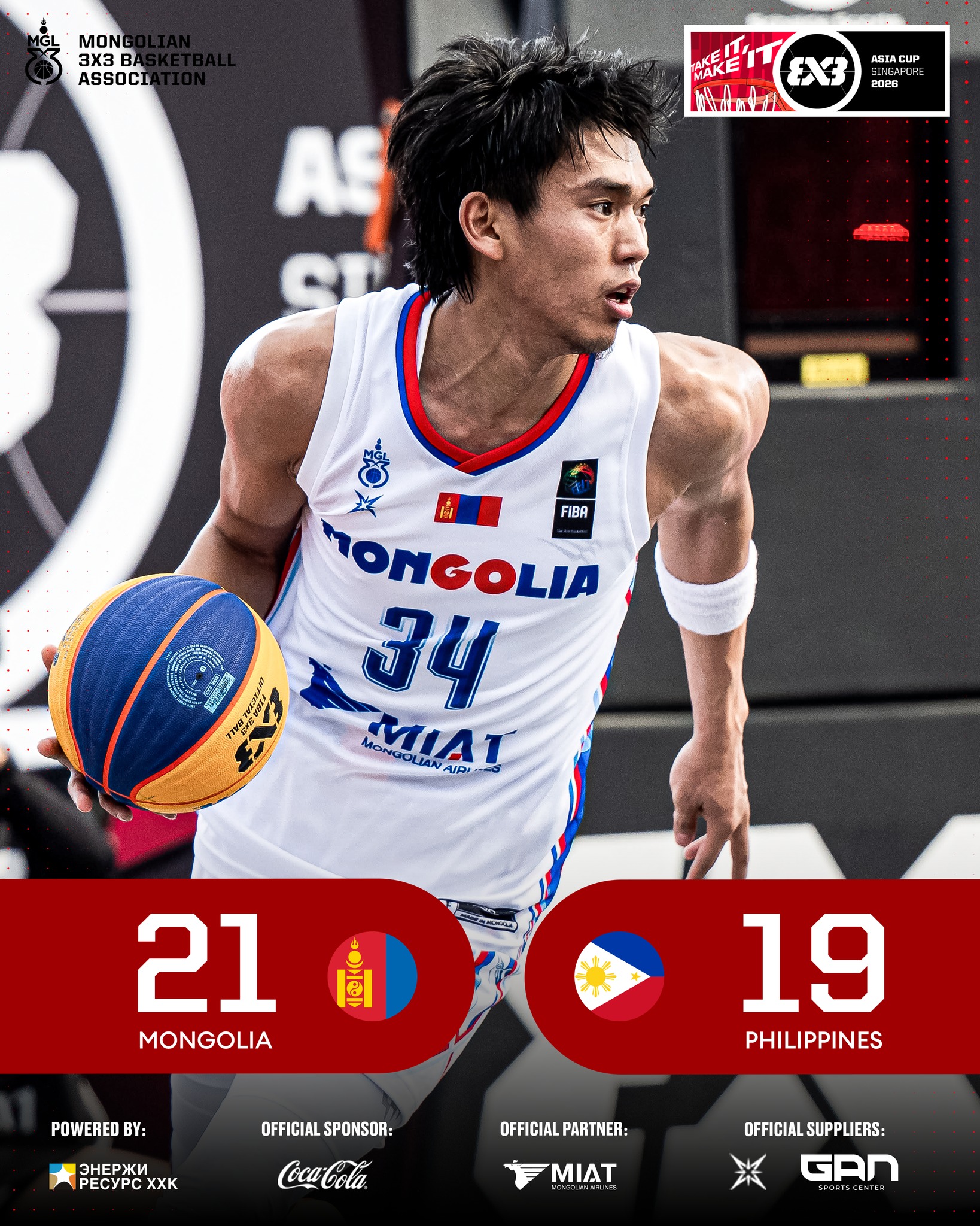 Сагсан бөмбөгийн “FIBA” 3x3-ын Ази тивийн аварга шалгаруулах тэмцээн хэсгийн өрсөлдөөнөөр үргэлжилж байна. Монгол Улсын эрэгтэй шигшээ баг хэсгийн эхний тоглолтод Тайваний багийг 21:15-аар, тэмцээний хэсгийн сүүлийн тоглолтоо Филиппин Улсын шигшээ багийн эсрэг хийж 21:19-ийн харьцаагаар ялалт байгууллаа. Манай шигшээ баг ийнхүү 2:0-гийн амжилтаар хэсгээ тэргүүлж эхэллээ. Одоо манай баг Японы багтай таарсан. Харин эмэгтэй баг Филиппиний багтай тоглоно.