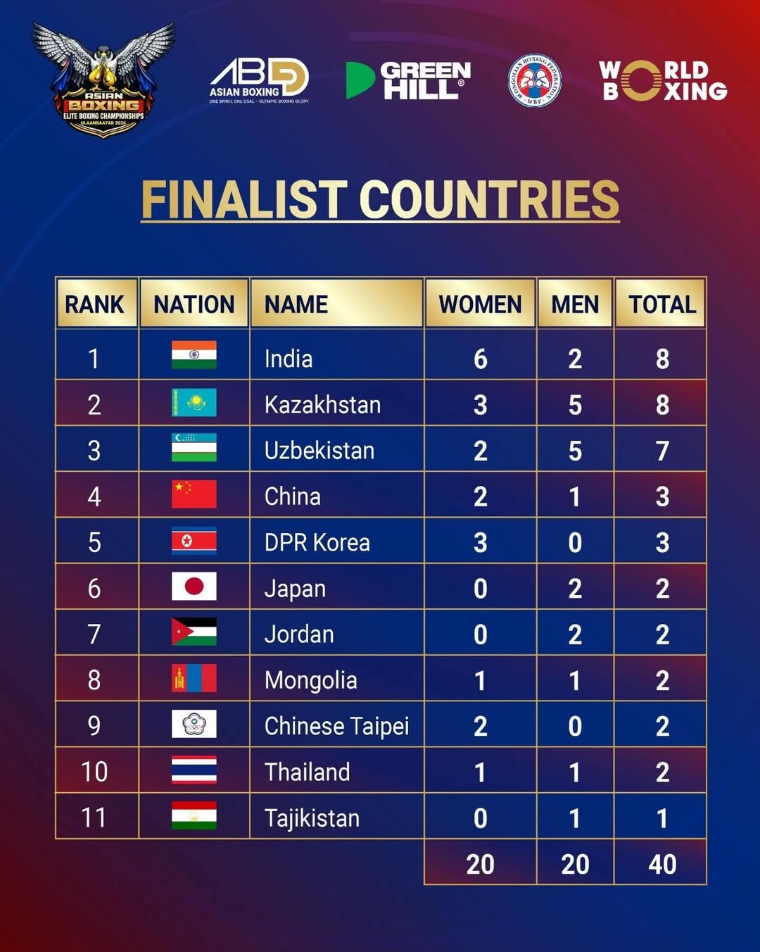 Дэлхийн аваргын хүрэл медальт Казахстаны Надежда Рябец, Узбекистаны Азиза Зокирова, дэлхийн аваргууд Казахстаны Оразбек Ассилкудов, Торехан Сабирхан, Айбек Оралбай, олимпын мөнгөн медальт, дэлхийн аварга Нурбек Оралбай, дэлхийн аваргын мөнгөн медальт Казахстаны Сабиржан Аккаликов, дэлхийн аварга Узбекистаны Фазлиддин Еркинбоев нар шалгарчээ. Маргааш буюу дөрөвдүгээр сарын 9-ний өдөр эмэгтэй финалын тулаанууд, дөрөвдүгээр сарын 10-ны өдөр эрэгтэй финалын тулаанууд явагдана.