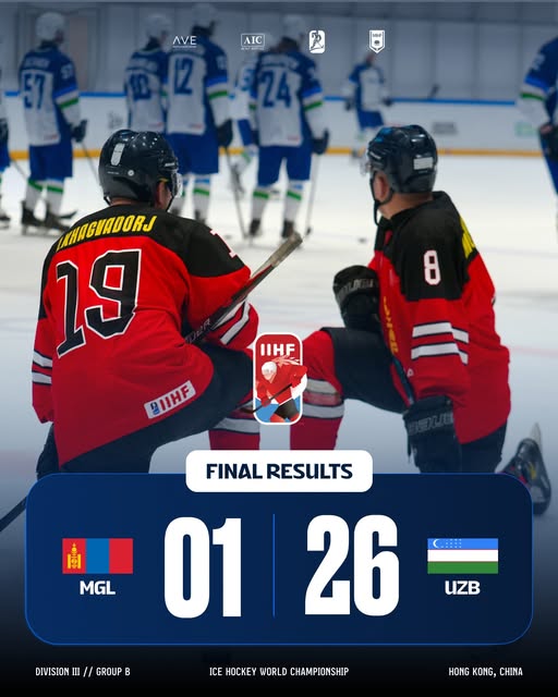 Хоккейн дэлхийн аварга шалгаруулах тэмцээний гуравдугаар дивизионы “B” хэсгийн эхний тоглолтод Монгол Улсын шигшээ баг хэсгийн хамгийн хүчтэй өрсөлдөгч Узбекистан Улсын шигшээ багтай өрсөлдөн 1:26-гийн харьцаатай оноогоор ялагдал хүлээлээ. Манай баг маргааш 16:30 цагаас Люксембургийн багтай хэсгийн хоёр дахь тоглолтоо хийх болно.