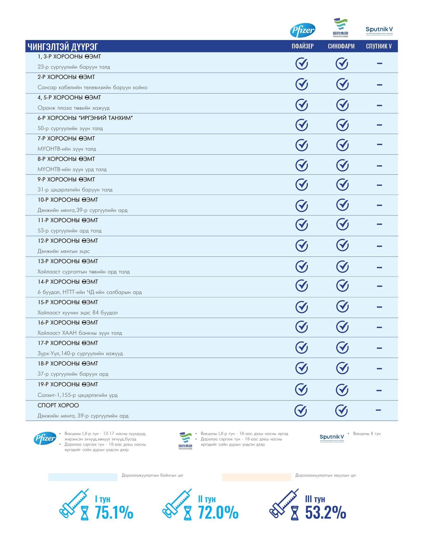 | Өнөөдөр ажиллах дархлаажуулалтын цэгүүд |