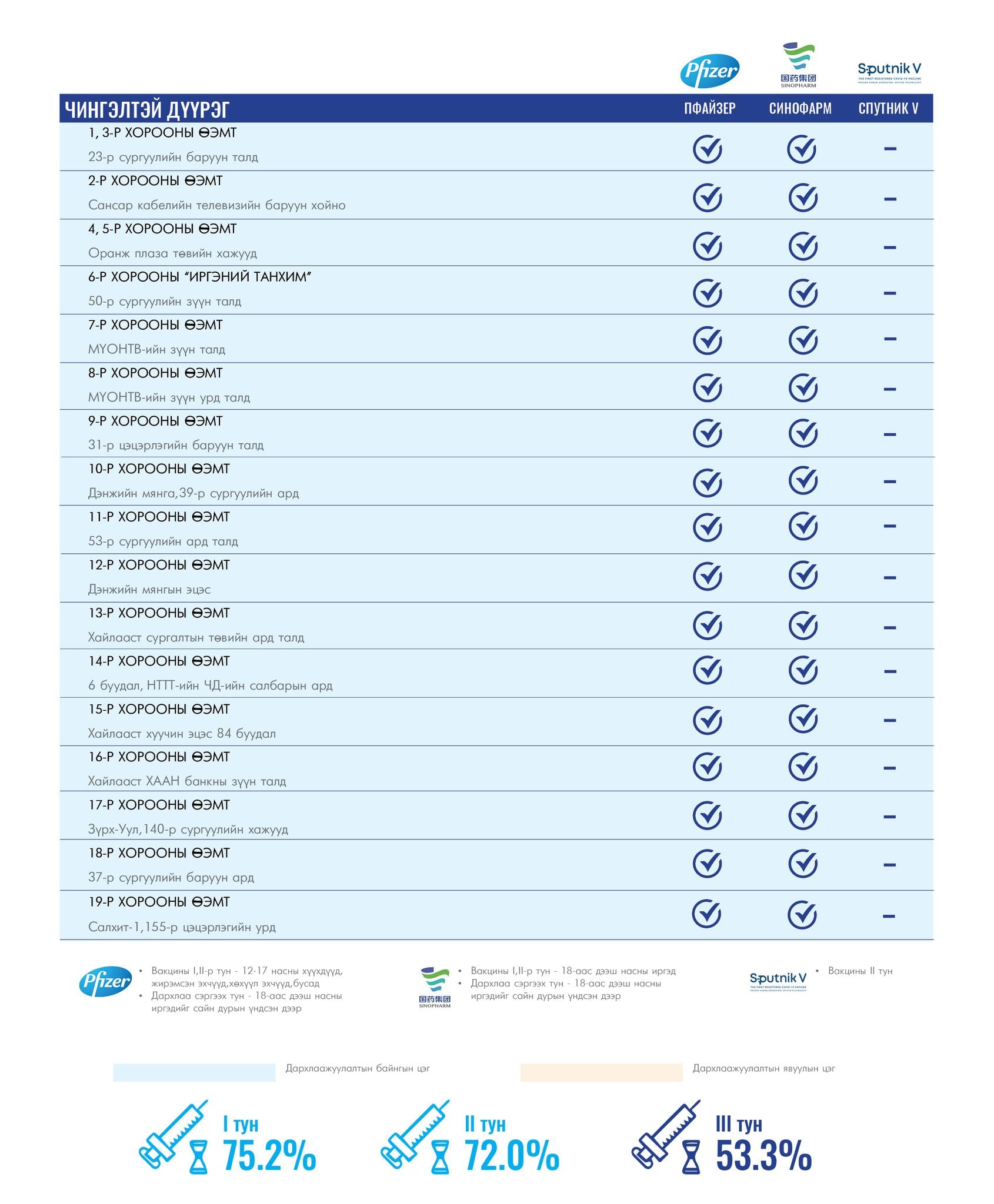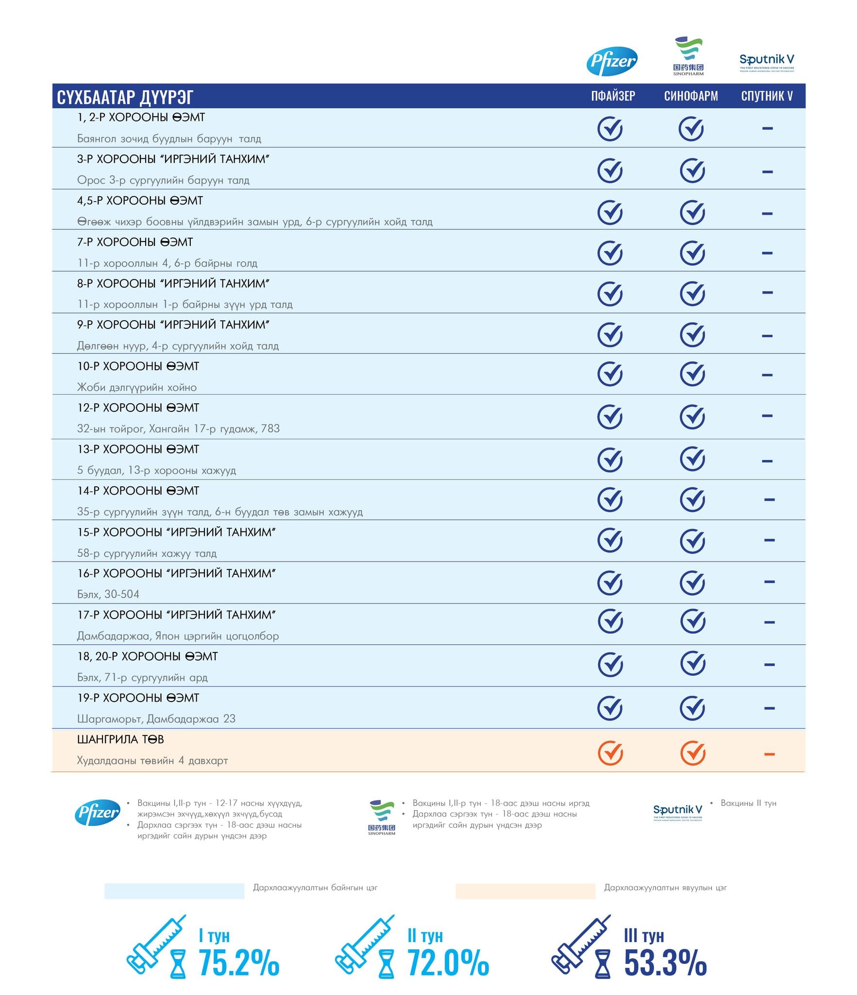 | Өнөөдөр ажиллах дархлаажуулалтын цэгүүд |