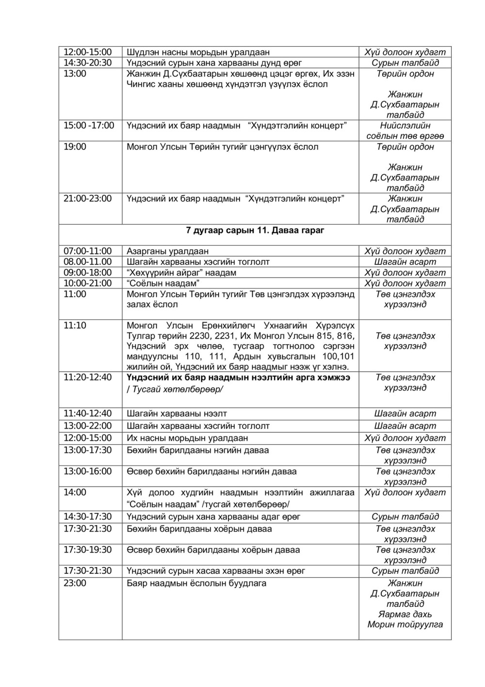 | Үндэсний их баяр наадмын нэгдсэн хөтөлбөр |