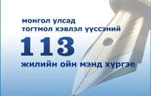 Монгол Улсад тогтмол хэвлэл үүссэний 113 жилийн ой энэ өдөр тохиож байна