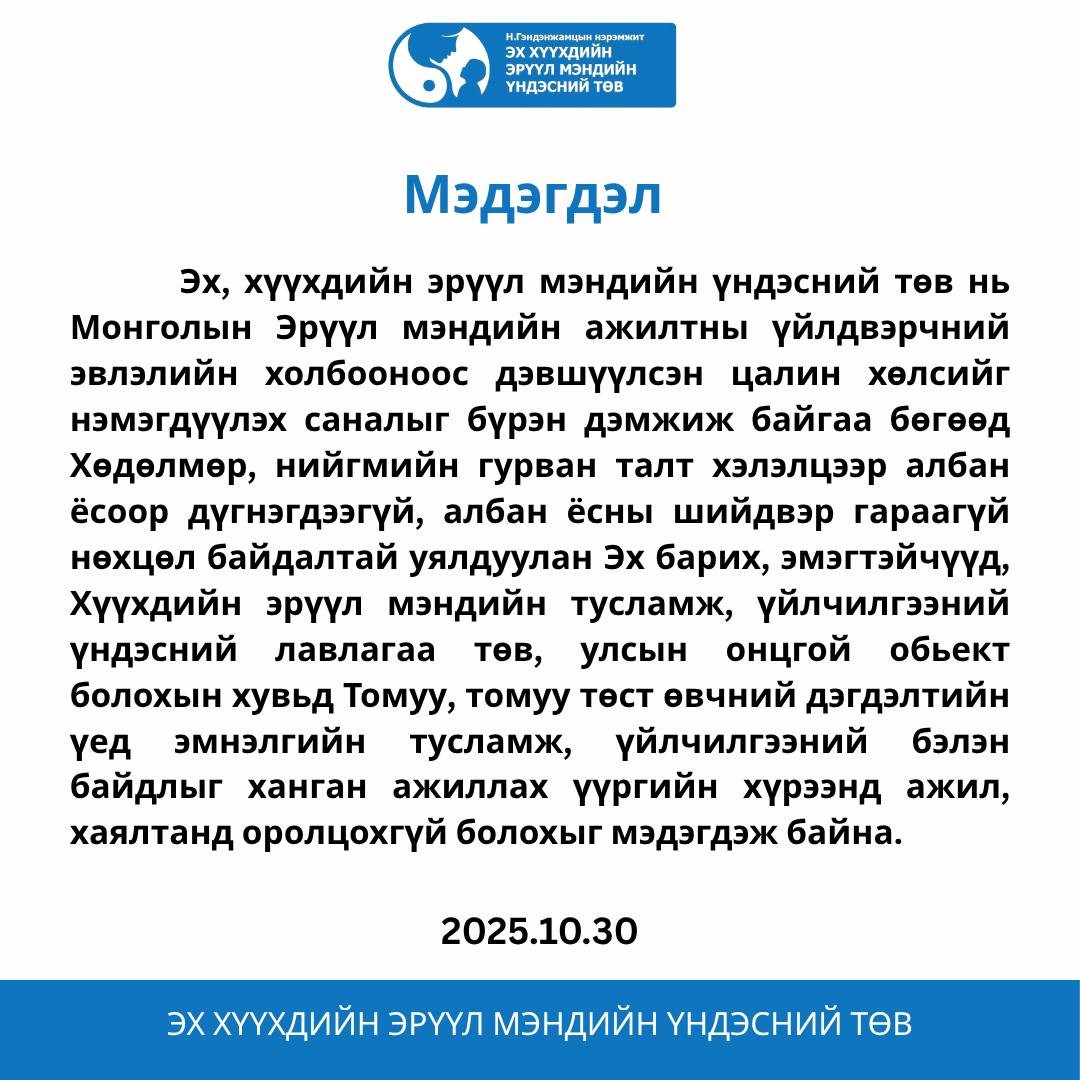 | ЭХЭМҮТ-ийн эмч, мэргэжилтнүүд ажил хаялтад оролцохгүй |  |