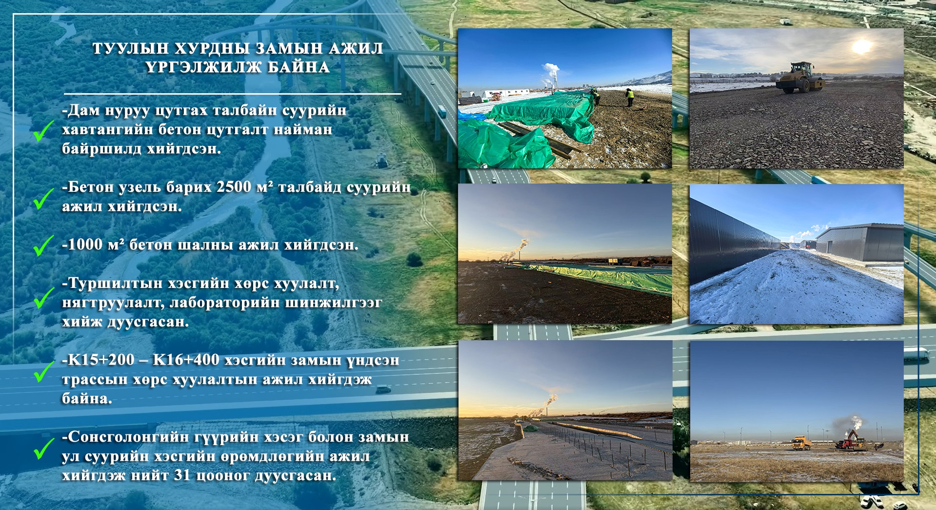 | ТУУЛЫН ХУРДНЫ ЗАМЫН АЖИЛ ҮРГЭЛЖИЛЖ БАЙНА |