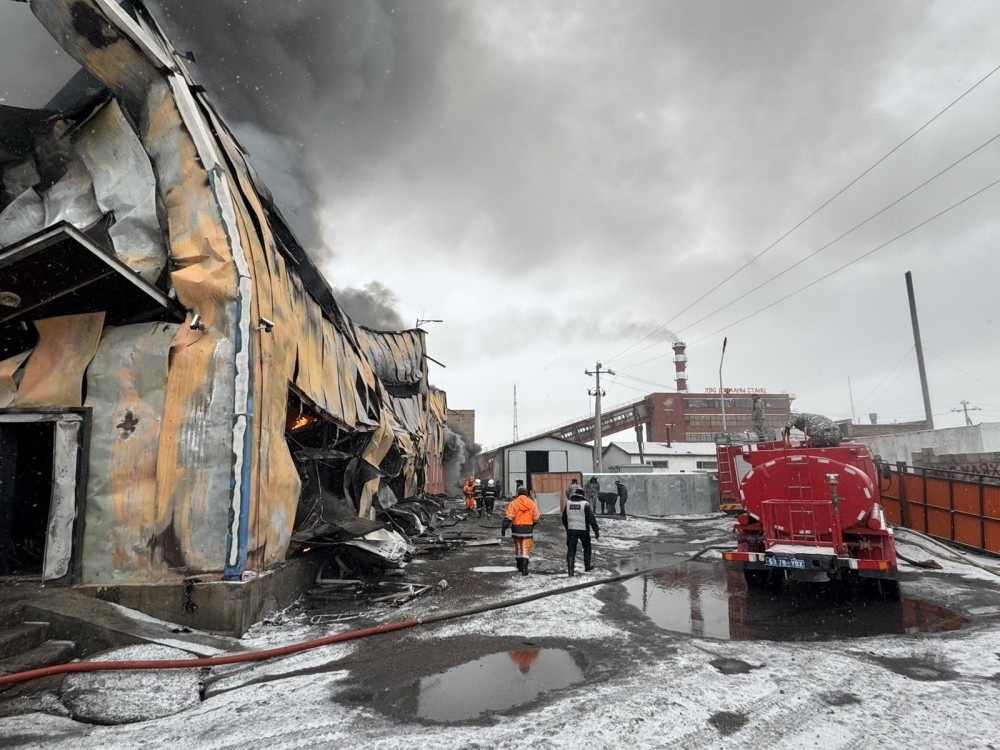 Онцгой байдлын алба хаагчид "Шинэ Улаангом зах"-д гарсан галыг унтраахаар ажиллаж байна