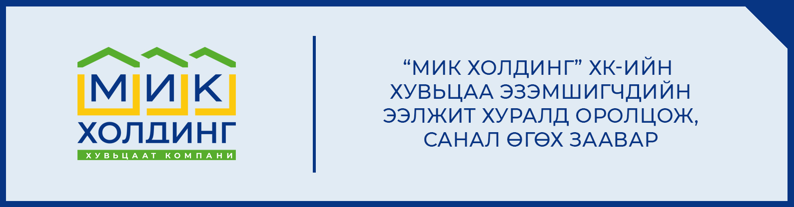 “МИК Холдинг” ХК-ийн Хувьцаа эзэмшигчдийн ээлжит хурлыг 2025 оны 4 дүгээр сарын 30-ны өдрийн 11:00 цагт live.mik.mn сайтаар дамжуулан цахим хэлбэрээр хуралдуулна.
