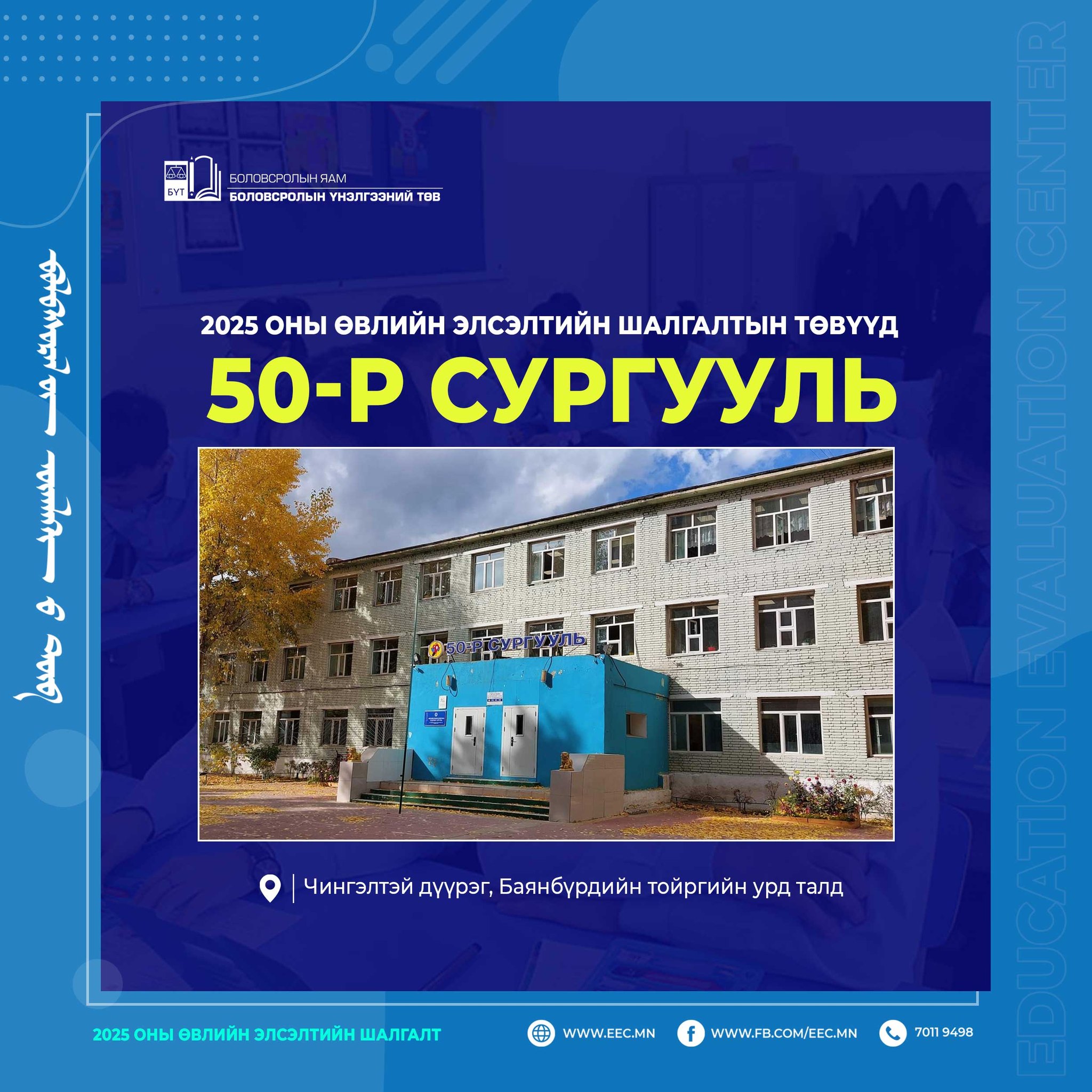 | 2025 оны өвлийн Элсэлтийн шалгалтын төвүүд |