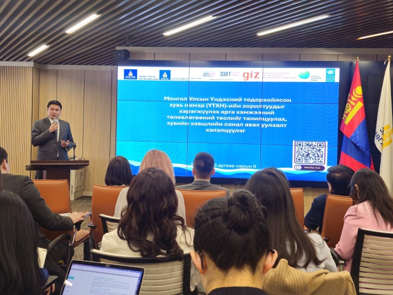 Эдийн засаг, хөгжлийн яамны Хөрөнгө оруулагчдын эрх ашгийг хамгаалах төвд “Монгол Улсын Үндэсний тодорхойлсон хувь нэмэр (ҮТХН 3.0)-ийн зорилтыг хэрэгжүүлэх арга хэмжээний төлөвлөгөөний төслийг танилцуулах, хувийн хэвшлийн санал авах уулзалт, хэлэлцүүлэг” зохион байгуулагдлаа.