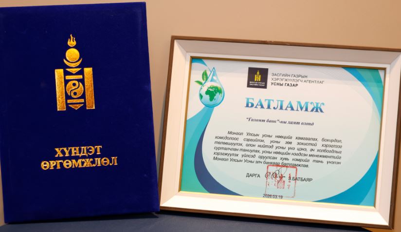 Дэлхийн усны өдрийг тохиолдуулан “Ус ба тэгш эрх” сэдвээр зохион байгуулагдсан арга хэмжээний үеэр Монгол Улсын усны нөөцийг судалж тогтоох, зүй зохистой ашиглах, хамгаалах, нөхөн сэргээх ажилд оруулж буй хувь нэмрийг үнэлж Голомт банкийг “Усны элч” банкаар дахин өргөмжиллөө.