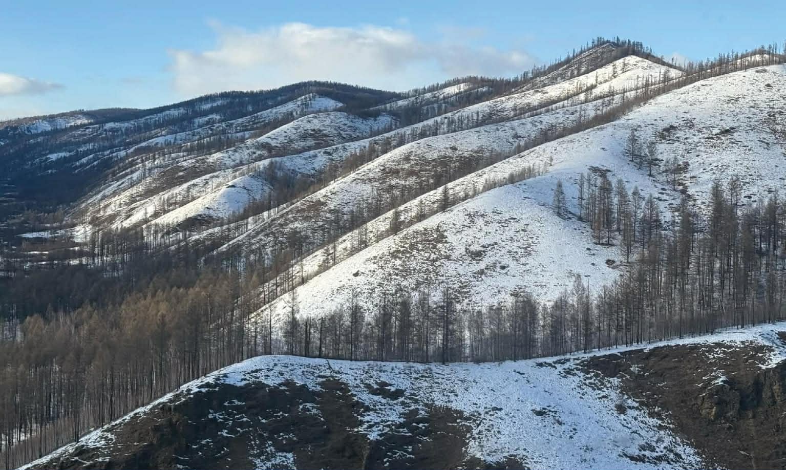 Цахар, Минжийн бэлчирээс бид цасны мотоцикл унаж аваад, Өвөржаргалантын рашаан руу хөдөллөө. Минж голын мөсөн дээгүүр цас манаруулан давхиж, онгоцныхоо цагт амжих гэж яарна. Шувуудын жиргээ, цасны шаржигнах чимээ, моддын мөчрийн гялбаа дэндүү тансаг ажээ. Нам гүм, аниргүй голын хөндий, ширэнгэн ой, уулс, уулсын хөндийн нугаар өдөржин явсаар Өвөржаргалантын рашаан дөхлөө. Заставын дарга Б.Мөнхтүвшин чарганыхаа хурдыг сааруулаад “Энэ хэсэгт өнгөрсөн хавар 40 эргэм насны гадаад явж байгааг дроноор илрүүлсэн. Турж, эцээд хачин болчихсон явж байсан. Хавар тулдаа хөлдчихөөгүй байна лээ. Олон хоног бэлэн гоймонгоор хооллож явсан байгаа юм. Украинаас Монголд ирээд, ОХУ-д байдаг хамаатан садан руугаа явахаар алхчихсан байгаа юм. Тайгын гүн рүү орж чадаагүй, машин явдаг замаар алхсан гэсэн үг. Магадгүй рашаан руу явж байсан машинд дайгдаад буусан ч байх магадлалтай. Тийм нэг хил зөрчигчийг илрүүлж, хуулийнханд өгөөд явуулсан. Бодоход хуулийн дагуу арга хэмжээ аваад, нутаг руу нь буцаасан байх. Яаж араатан амьтны хоол болчихоогүй юм. Хүний амь эрсдээгүй, хөвч тайга амгалан байгаад л үеийн үед баярлаж явах юм даа” гэв.