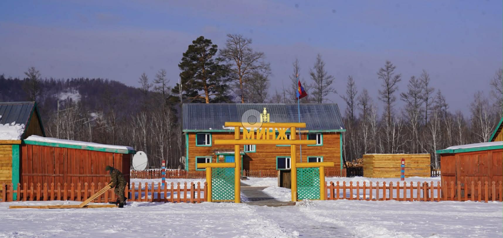 Явган хүн үл хүрч чадах энэ тайгад хилчдээс өөр хэн ч байхгүй. Хамгийн ойрхон айл хэдэн зуун километрийн зайд бий гэнэ. Машинтай битгий хэл морьтой явахад ч бэрх, алс тайга ажээ. Минжийн заставын модон хаалгаар яваад орлоо. Заставын дарга, дэд хурандаа Б.Мөнхтүвшин хилийн манаагаа буулгаж, үүрэг өгчихөөд биднийг угтан авав. Суурингийн голын байшин руу алхаж байтал хүний бараа, техникийн чимээнээр хэдэн нохой нь боргоод сүйд, үнээний зэлэн дээр хилчин эмэгтэйчүүд саалиа авч байна. Арав гаруй дүнзэн байшин, хөрөөдөж, хагалаад өрсөн түлээ, шагайнаас дээгүүр татсан цас, төгсгөл нь үл харагдах уулсын орой, мод, ан амьтад, цасны мотоцикл, морь, монгол банхар, торох үүлгүй цэнхэр тэнгэр, сэвшээ салхи бүхэн энэ тайгын хилчдийн “өмч”. Цай унд болчихоод, төд удалгүй бид Заставын дарга Б.Мөнхтүвшинг дагаад Минжийн хангай орчмын байгалийг, хилчдийн ажлыг үзэхээр хөдөллөө. Улаанбаатар руу явах онгоц 16:30 цагт нисэх ёстой. Нисдэг тэргээсээ хоцорвол бид ирэх сар хүртэл буюу дараагийн онгоц иртэл Минжийн хангайд байхаас өөр сонголтгүй.