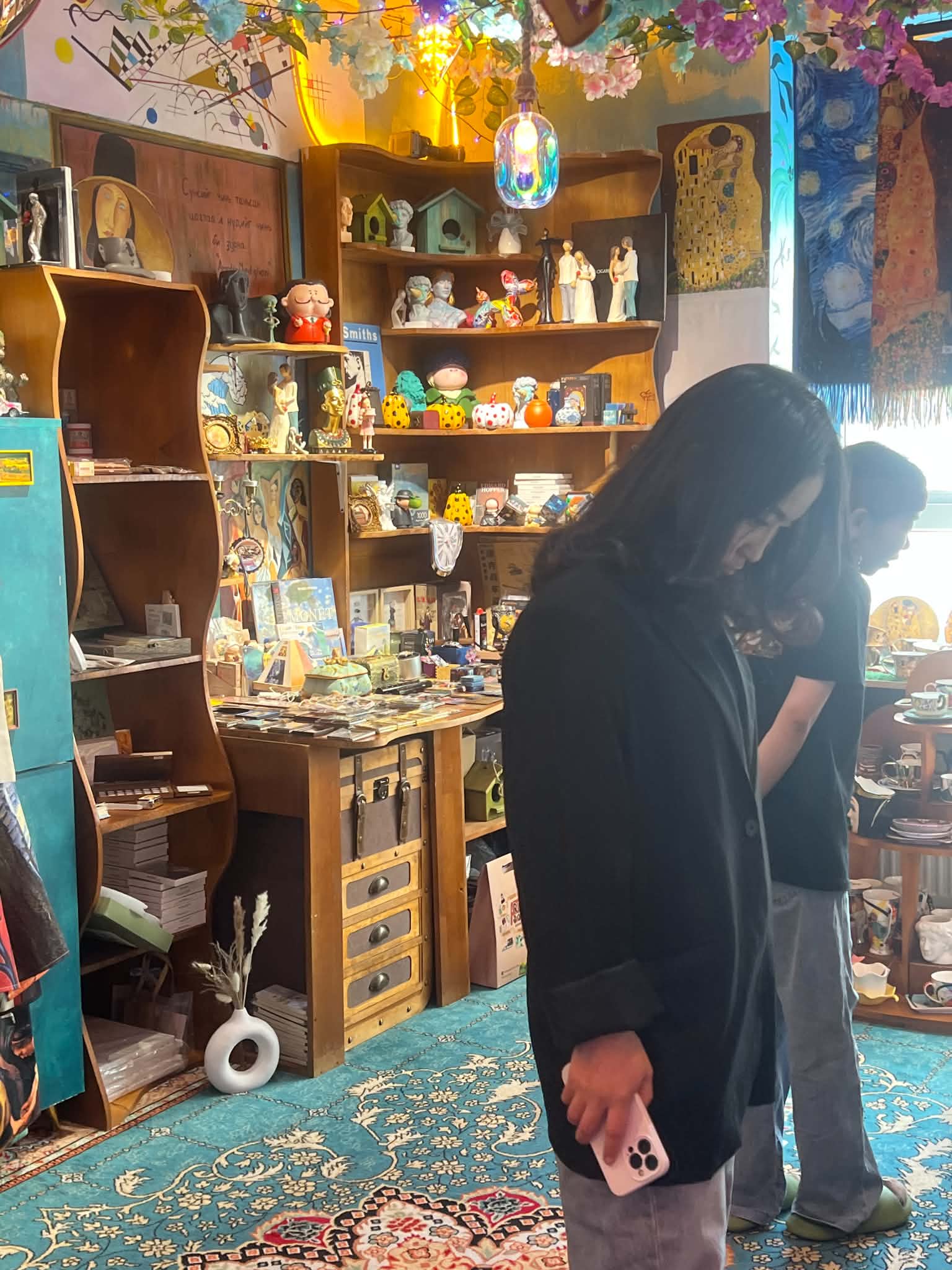 Түүнтэй ярилцах зуур бяцхан охид дэлгүүрийн эд хогшлыг сонирхож, тайлбар, үнийг нь асууж байлаа. Үнийг нь асуугаад ээжээсээ авч болохыг лавлана. Ээж нь зөвшөөрсөн бололтой бага дүү нь эрдэнэсийн авдар, эгч нь гоёлууд авч харагдлаа. Санасандаа хүрч баярлаж буй охид инээлдсээр дэлгүүрээс гарлаа. Тэднийг харахад кофе шоп өвөрмөц тохижилттой байхаас гадна үйлчилгээ сайтай байгаа нь үйлчлүүлэгчдийг татах нэг хөшүүрэг болдог бололтой.