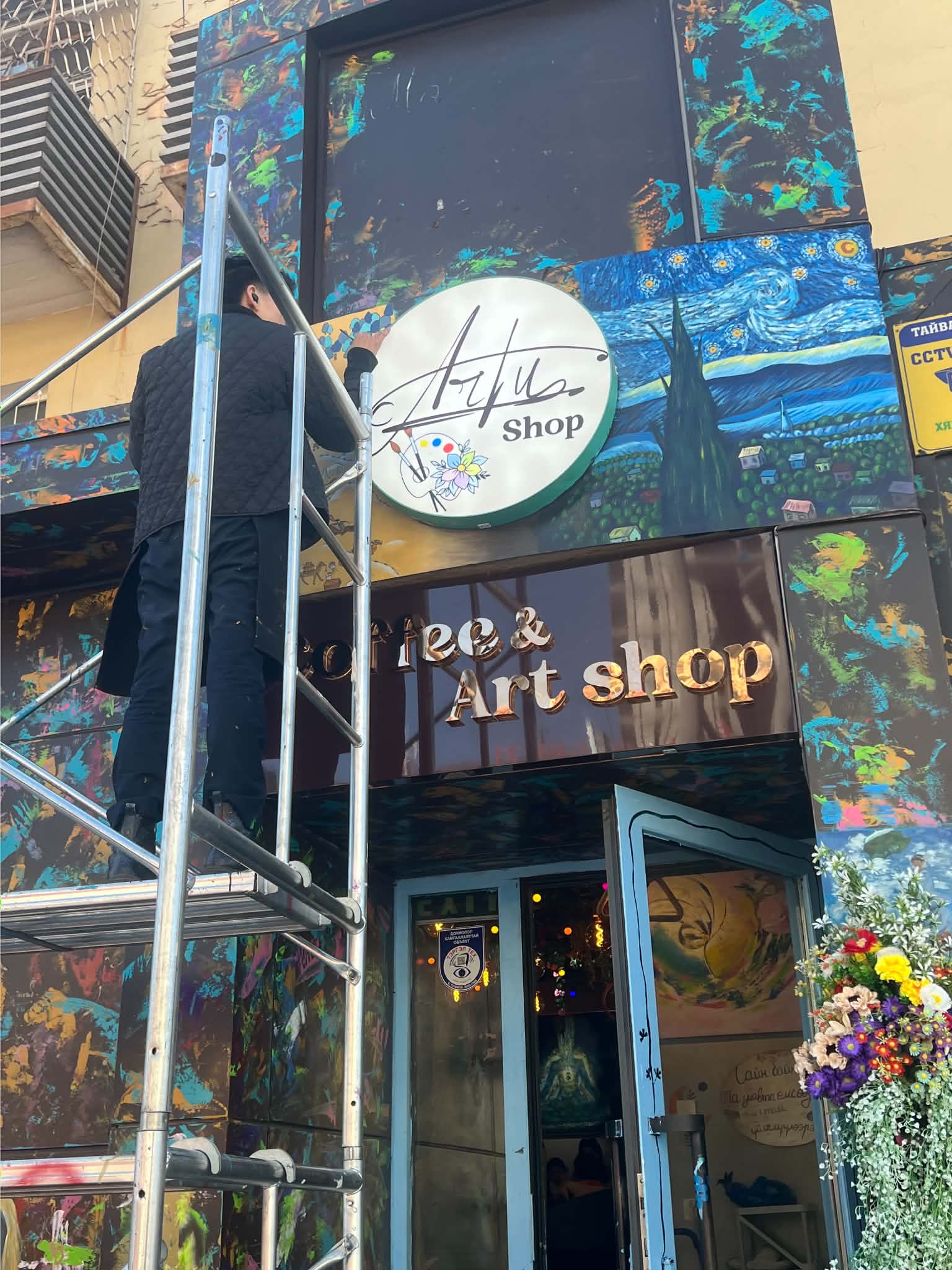 Улаанбаатар хотын төв хэсэг, “Цэцэг” төвийн замын эсрэг талд нэгэн өвөрмөц орчин бүрджээ. Гадна хананаасаа эхлэн уран зургаар гоёсон энэ газар бол “Арту” кофе шоп. Хаалгаар ороход л бор өнгийн бийрэн хэлбэртэй самбар дээрх “Та улавчаа өмсөөд тухтай үйлчлүүлээрэй” гэх бичиг угтах нь үйлчилгээний салбарт төдийлөн харагддаггүй шийдэл юм. Улавч өмсөж, гадуур хувцасааа тайлаад цааш ороход “Кофе шоп уу, уран зургийн галлерэй бил үү” гэж андуурмаар тохижилттой харагдана.