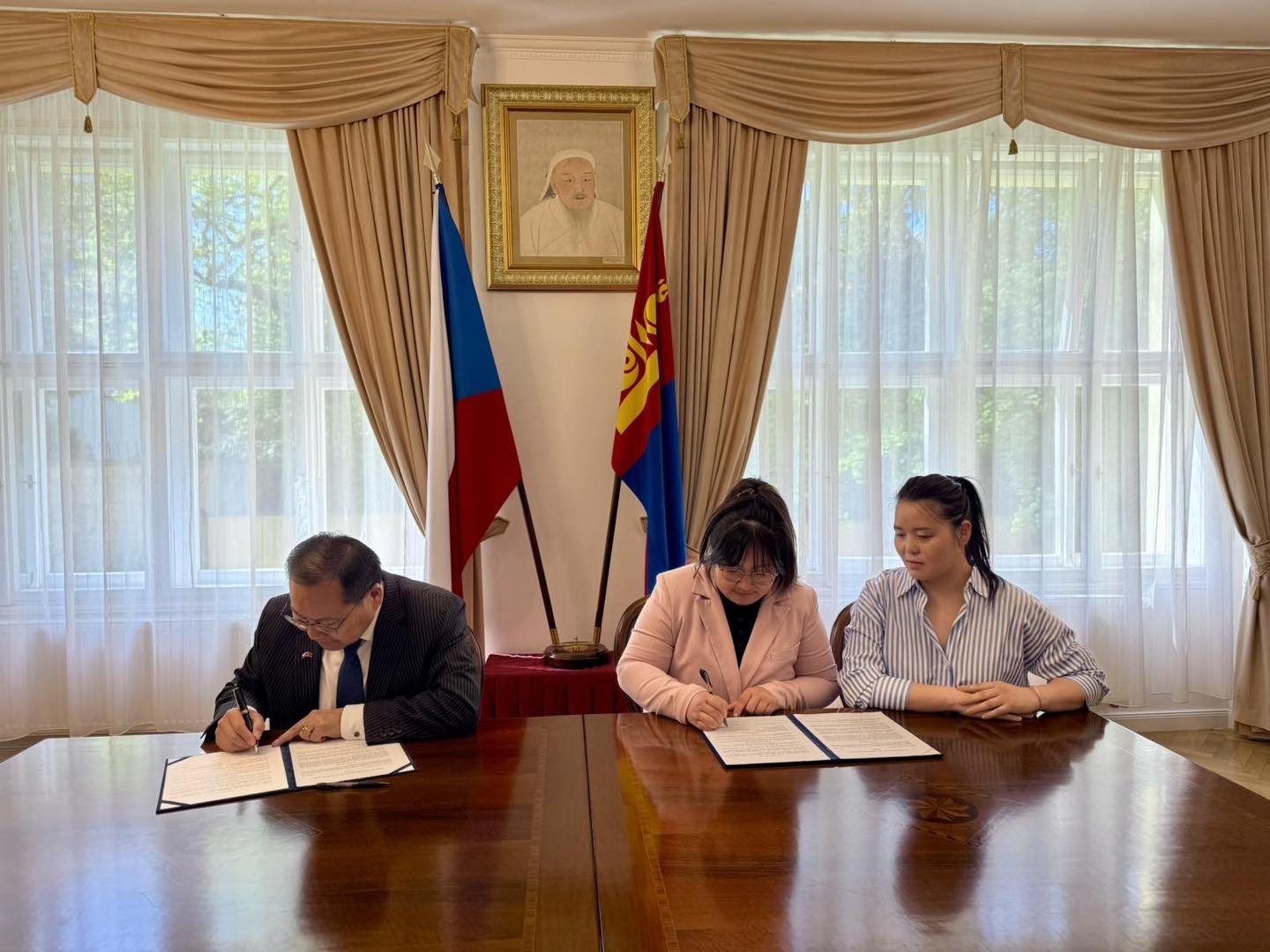 Монгол Улсын Засгийн газрын 2024-2028 оны үйл ажиллагааны хөтөлбөр, “Дэлхийн монголчууд-3” цогц арга хэмжээний хүрээнд Боловсролын яамнаас олгосон санхүүгийн дэмжлэгийг үзүүлэв. Бүгд Найрамдах Чех Улсад монгол хэл, соёлын сургалтын үйл ажиллагаа явуулж буй Плзен хот дахь “Монголчуудын холбоо” ТББ /Mongolský spolek/, Мост хот дахь “Монголын мэдээлэл, соёлын төв” /Mongolské IK centrum/, Пардубице хот дахь хотод “Mon Week School”, Хавличкув Брод хот дахь “Чех-Монголын Холбоо TББ” /Česko-Mongolský spolek z.s/ гэсэн дөрвөн сургалтын төвд олгож, хамтран ажиллах тухай гэрээ байгуулах үйл ажиллагааг дөрөвдүгээр сарын 24-ний өдөр ЭСЯ-нд зохион байгуулав.