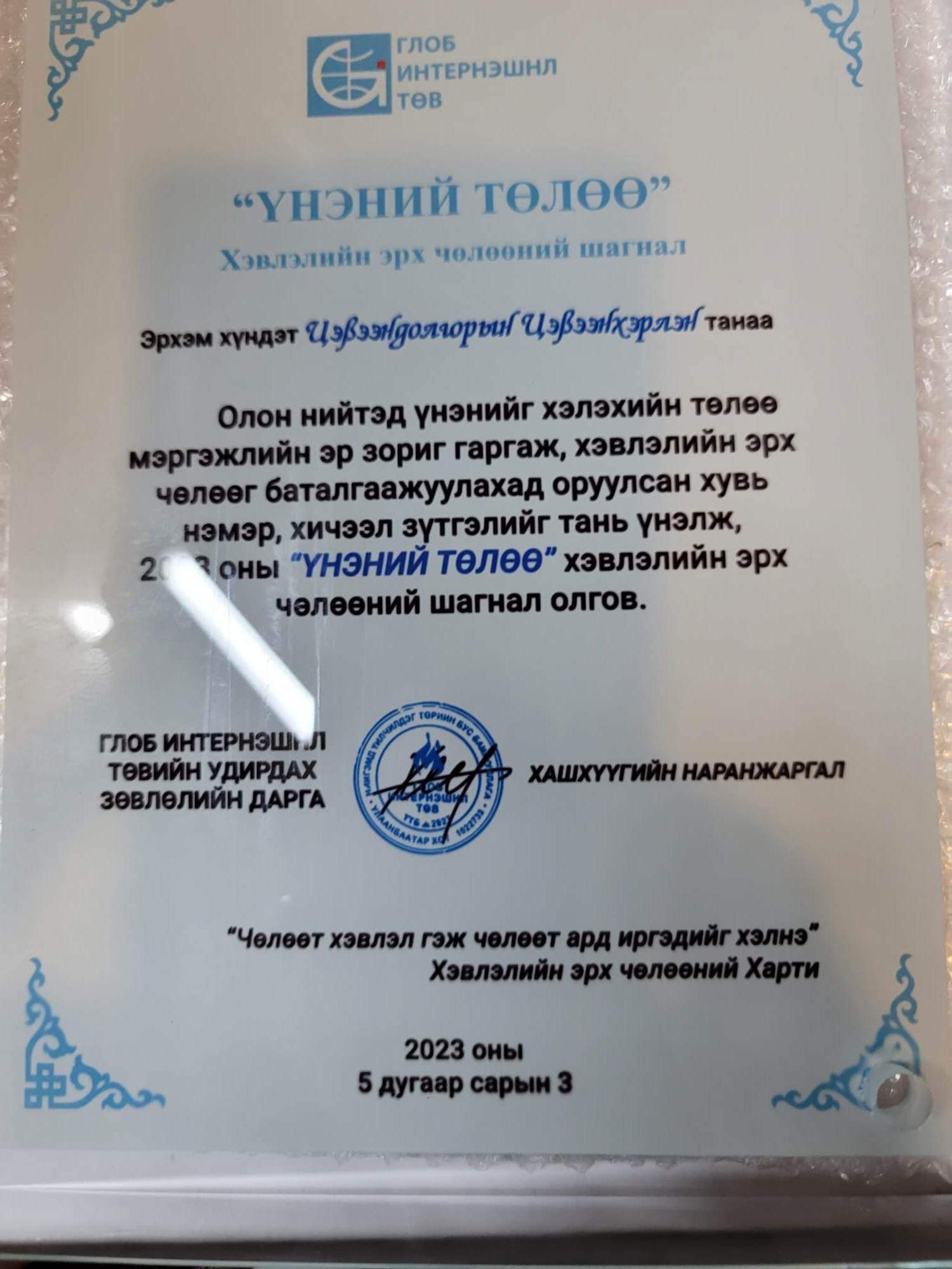 2021 онд: “Ийгл ньюс” телевизийн сэтгүүлч Г.Балжинням нар хүртэж байжээ.