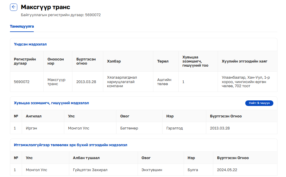 Баримт 7: “Максгүүр гранд” ХХК-ийн эзэн Б.Гэрэлт-Од 2018 онд өөрийн баз Г.Очирбат, базынхаа хүргэн ах Т.Батмөнх хоёртой “Баргилт орд” ХХК-ийг хамтран байгуулж, халаас нэгтгэсэн. Одоо “Баргилт орд” ХХК-ийг эзэмшигч, гүйцэтгэх захирлаар нь “Максгүүр транс” ХХК-ийн гүйцэтгэх захирал Э.Булга ажиллаж байгаа. Энэ баримтаас УИХ-ын гишүүн Т.Мөнхсайханы төрсөн ах Т.Батмөнх нь “Эрдэнэс тавантолгой” ХК-аас 764 тэрбум төгрөгийн тендер авсан “Максгүүр транс” ХХК-тай хамааралтай нь илүү тодорхой харагдаж буй байх.