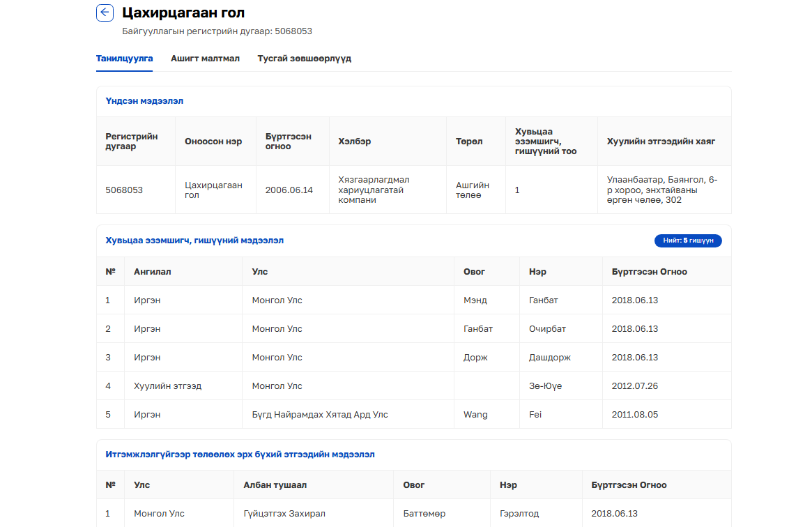 Баримт 2: “Эрдэнэс тавантолгой” ХК-ийн нүүрс олборлолтыг 764 тэрбум төгрөгийн тендерийг авсан “Максгүүр транс” ХХК-ийг Баттөмөрийн Гэрэлт-Од гэх залуу эзэмшдэг, гүйцэтгэх захирлаар нь түүний эхнэрийнх нь дүү Энхтүвшингийн Булга гэх бүсгүй ажилладаг.