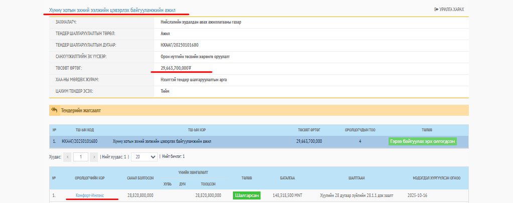 САЙД АСАН Х.БОЛОРЧУЛУУНЫ ДҮҮ Х.БОЛОРЧИМЭГИЙН ХҮҮ О.ТЭМҮҮЛЭНГИЙН “САРУУЛ ӨРГӨӨ КОНСТРАКШН” ХХК “ЦАХИЛГААН ДАМЖУУЛАХ ҮНДЭСНИЙ СҮЛЖЭЭ” ТӨХК-ИЙН 1.1 ТЭРБУМЫН ТЕНДЕРТ ШАЛГАРЧЭЭ