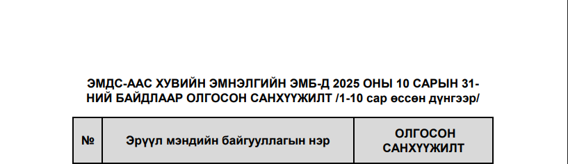 | НЭМГ-ЫН ДАРГА АСАН Л.ТӨМӨРБААТАРЫН ХУВИЙН ЭМНЭЛЭГ ЭМДС-ГААС ХАМГИЙН ИХ САНХҮҮЖИЛТ АВЧЭЭ |