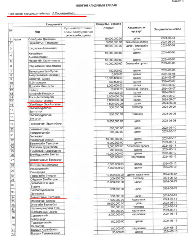 АМГТГ-ЫН ДАРГА АСАН Ш.ГАНХУЯГИЙН Г.АЛТЖИН АГСНЫ ХҮҮ ЭДВАРД СҮРЭНГЭЭС АВСАН 2.5 ТЭРБУМ АВЛИГЫН МӨНГИЙГ УИХ-ЫН ГИШҮҮН Ц.ТУВААН АДУУЧИН ДҮҮ Г.ГАН-ОДЫНХОО ДАНСААР ДАМЖУУЛСАН УУ