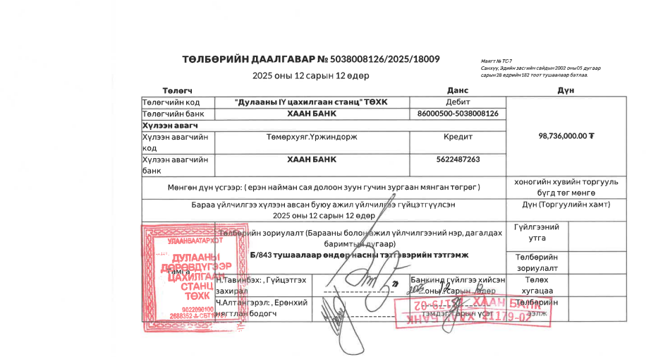 | ЕРӨНХИЙ САЙД Г.ЗАНДАНШАТАР “ДЦС-4” ТӨХК-ИЙН ЗАХИРАЛ АСАН Ү.ТӨМӨРХУЯГИЙГ АТГ-Т ШАЛГУУЛАХЫГ ҮҮРЭГДСЭН Ч ҮНЭНДЭЭ ШАГНАЖЭЭ |