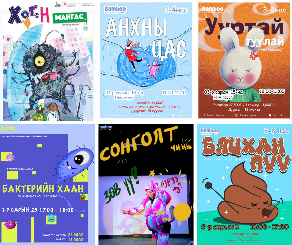 -Бид хог хаягдал, усны хомсдол, байгаль орчны бохирдол зэрэг сэдвийг хөндөж “Хогон мангас”, “Бидний эрхэм анд ус” зэрэг жүжгүүдийг бүтээсэн. Хүүхдүүдийг багаас нь байгалиа хайрлах сэтгэлтэй хүн болж өсөөсэй гэж хүсдэг. Онцлох жүжиг гэвэл 0-4 насны хүүхдэд зориулсан “Ус”, “Анхны цас”, “Намар” зэрэг танин мэдэхүйн жүжгүүд бий. Дийлэнх хүмүүс 0-4 насны хүүхдийг “Энэ жоохон юм жүжиг ойлгохгүй” гэдэг. Гэхдээ тэд хүн л болсон хойно юмыг мэдэрч, ойлгоно шүү дээ. Энэ төрлийн жүжиг хэт нүүр хувиргал хийхгүй яг аав, ээж, ах, эгч шиг нь харилцаж, хамт тоглож байгаа юм шиг байдаг. Хамгийн үнэн, гэгээн үзэгч бол хүүхэд тэд хамгийн чин сэтгэлээсээ хүлээж авдаг болохоор хүүхдийн жүжигт тоглох дуртай байдаг.
