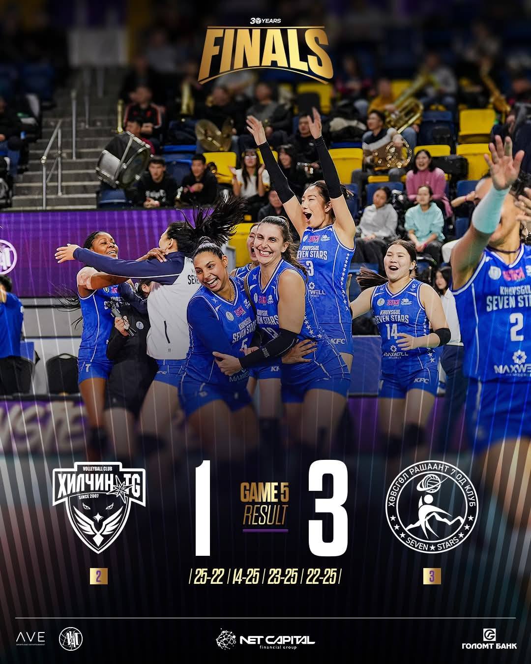 Монголын волейболын холбооны Үндэсний дээд лигийн эмэгтэй багуудын 2025-2026 оны улирлын тоглолтын гуравдугаар байрын төлөөх тоглолт болов. Эмэгтэй багийн лигийн гуравдугаар байрын төлөө “Хөвсгөл Seven Stars" баг дөрвөн ээлжийн тоглолтод 25:22, 14:25, 23:25, 22:25-аар “Хилчин TG” багийг 3:1-ийн харьцаатайгаар буулган авснаар Үндэсний дээд лигийн хүрэл медалийн эзэд боллоо.