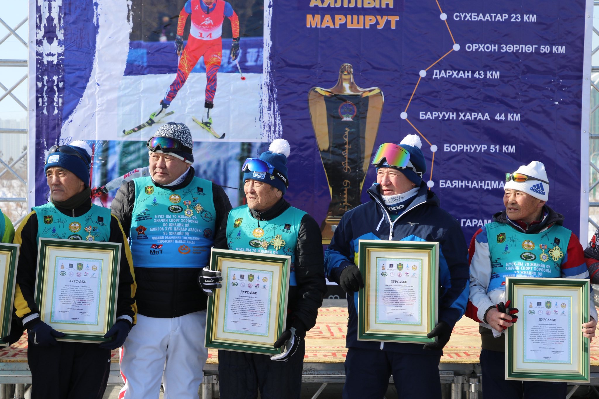Монголын үндэсний олимпын хорооны 70 жил, “Хилчин” спорт хорооны түүхт 80 жил, Монгол хүн цанаар аялсны 85 жилийн ой, “Милан Кортино-2026” өвлийн олимпын наадмыг угтан зохион байгуулагдсан гүйлтийн цанын буухиа аялал амжилттай болж тамирчид бариандаа орлоо.