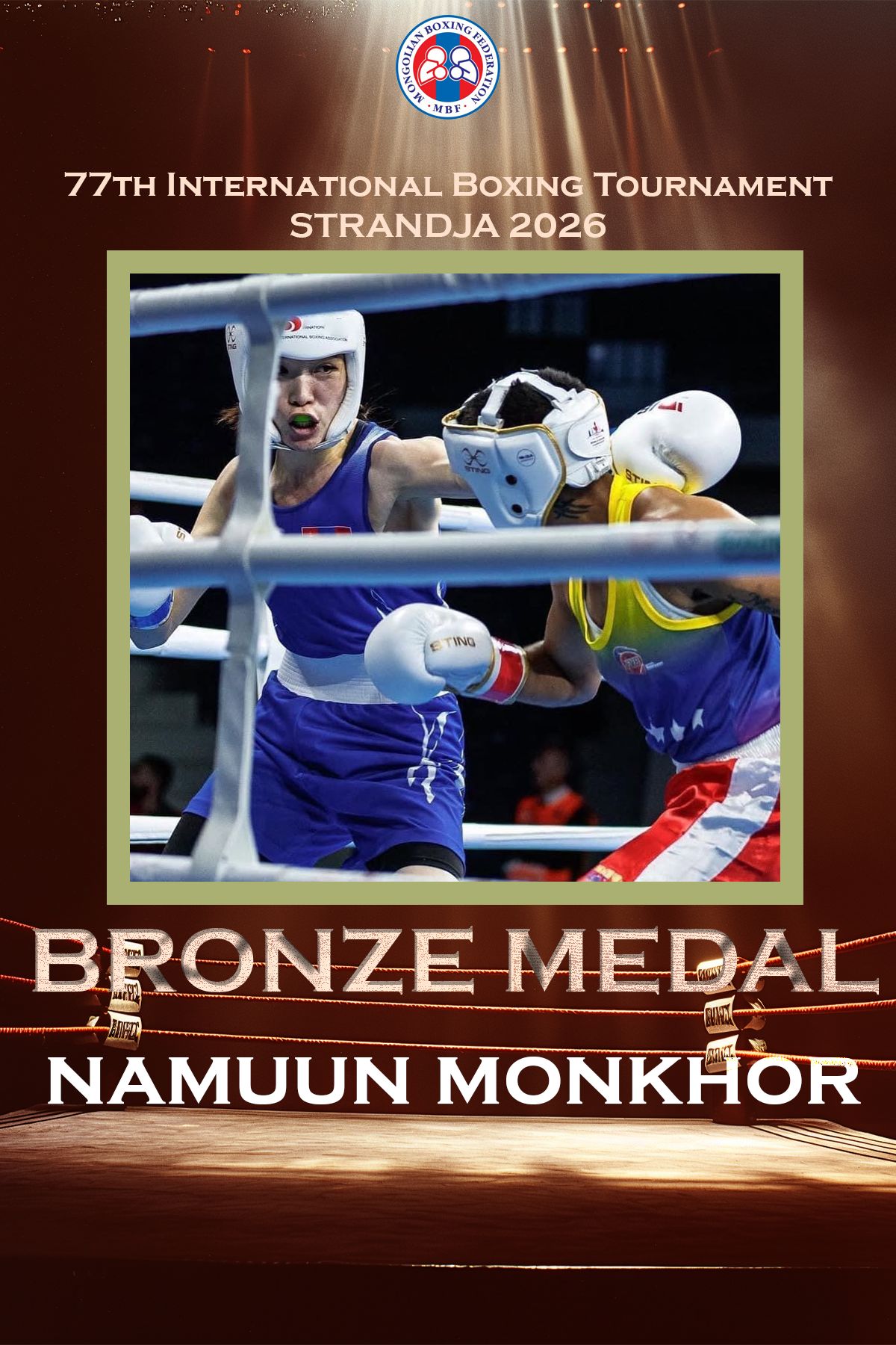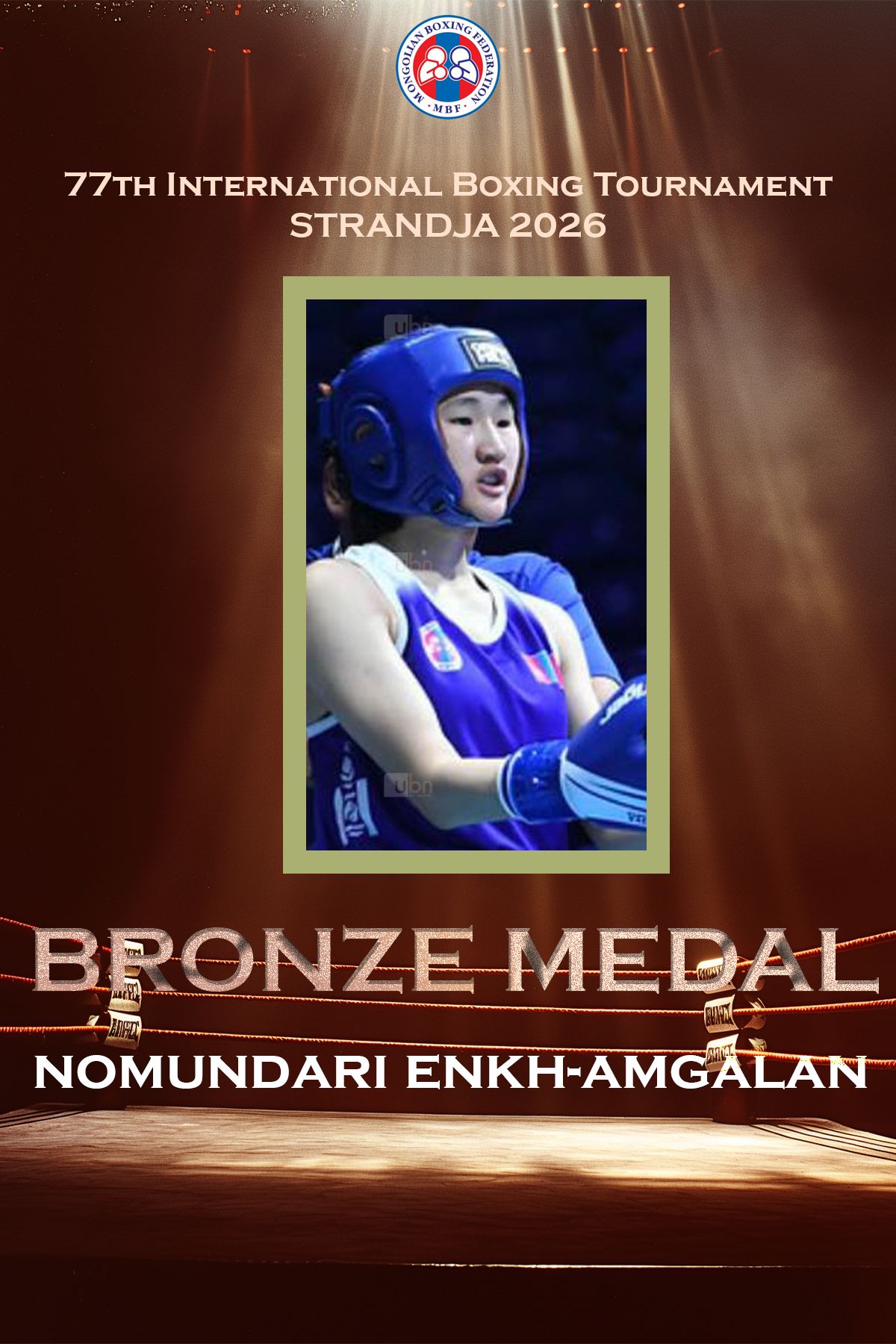 Болгар Улсын Софи хотод сонирхогчдын боксын 77 дахь удаагийн “Странджа-2026” болж байна. Спортын мастер Энх-Амгалангийн Номундарь Украины тамирчин 2018 оны ДАШТ-ий мөнгөн медальт Okhota Hanna-тaй тулалдан шүүгчдийн нэгдсэн саналаар ялагдал хүлээж, энэ удаагийн тэмцээнийг хүрэл медальтайгаар өндөрлүүлж байна.